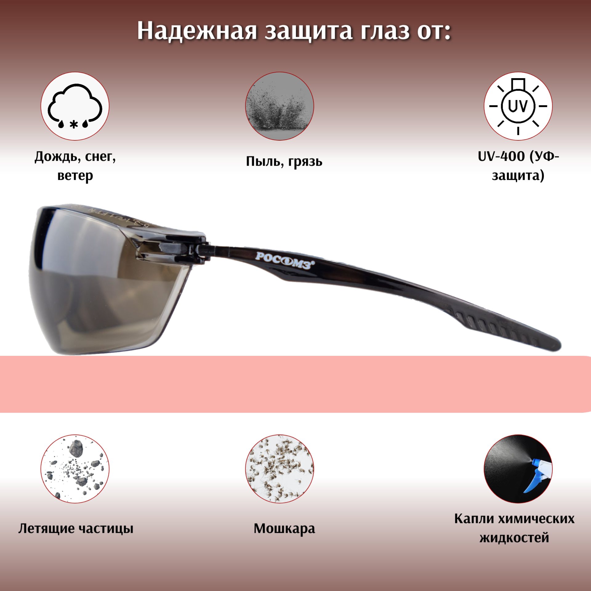 Очки защитные РОСОМЗ О88 Сургут темно-серые, очки солнцезащитные, ударопрочные