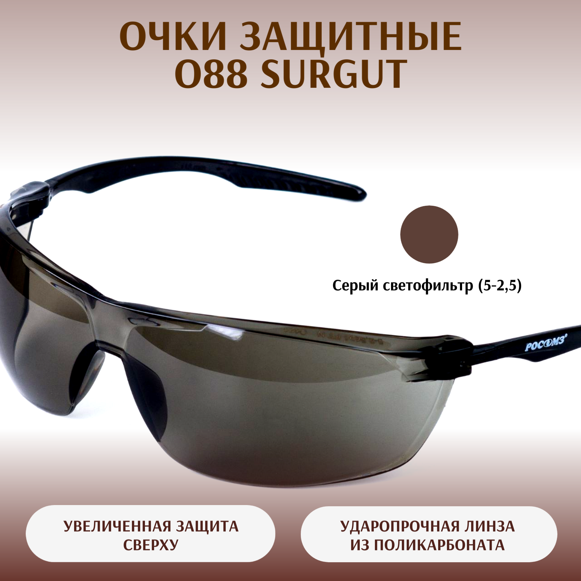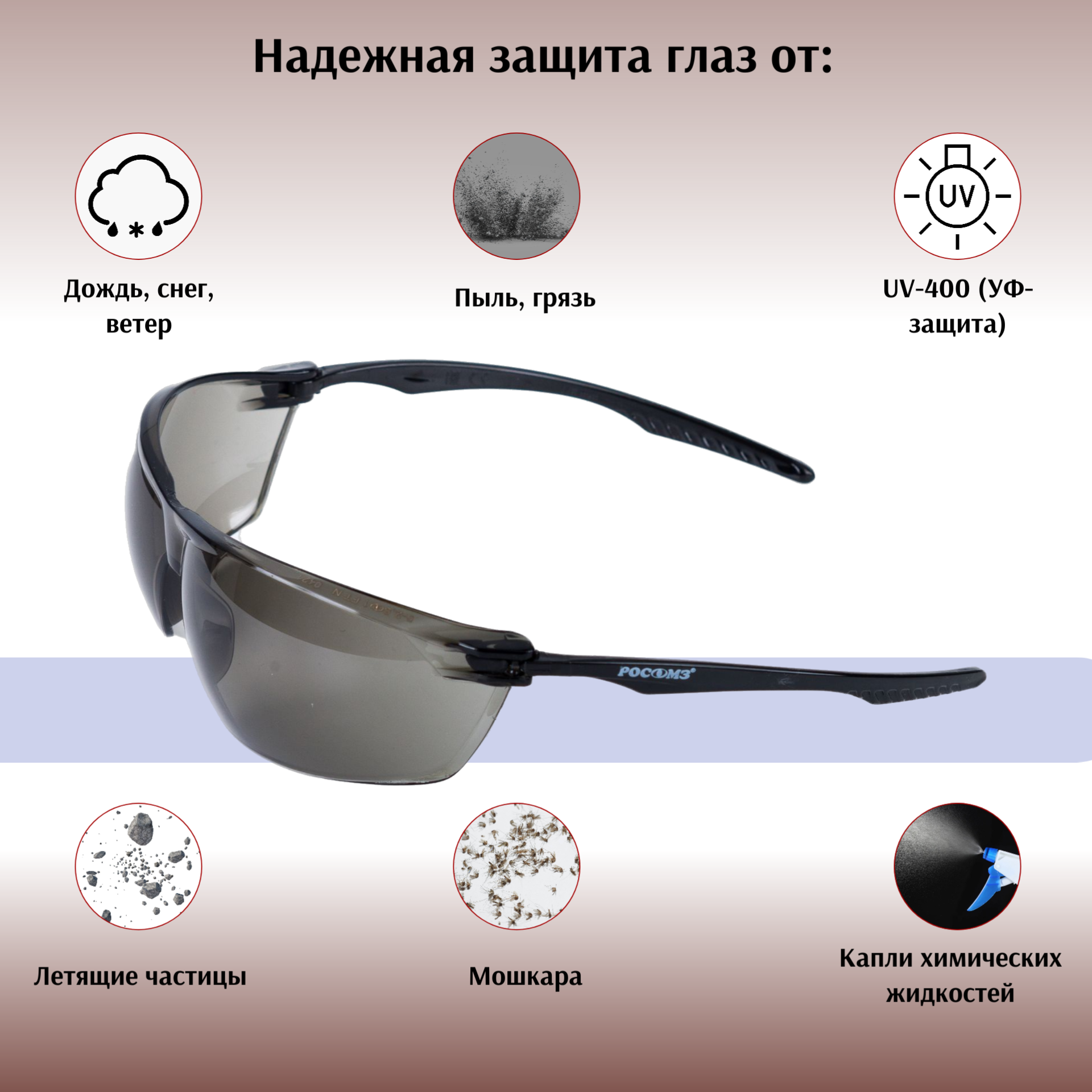 Очки защитные РОСОМЗ О88 Сургут темно-серые, очки солнцезащитные, ударопрочные
