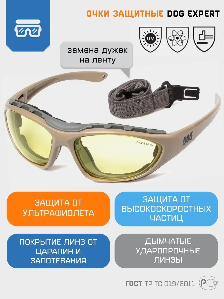 Очки DOG "Эксперт", поликарбонат, открытые, желтые, защита от UV