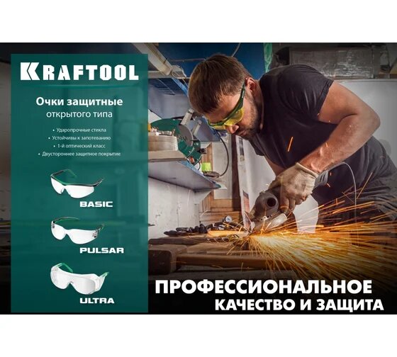 KRAFTOOL PULSAR, открытого типа, прозрачные, увеличенная линза устойчивая к запотеванию, панорамные защитные очки (110460)