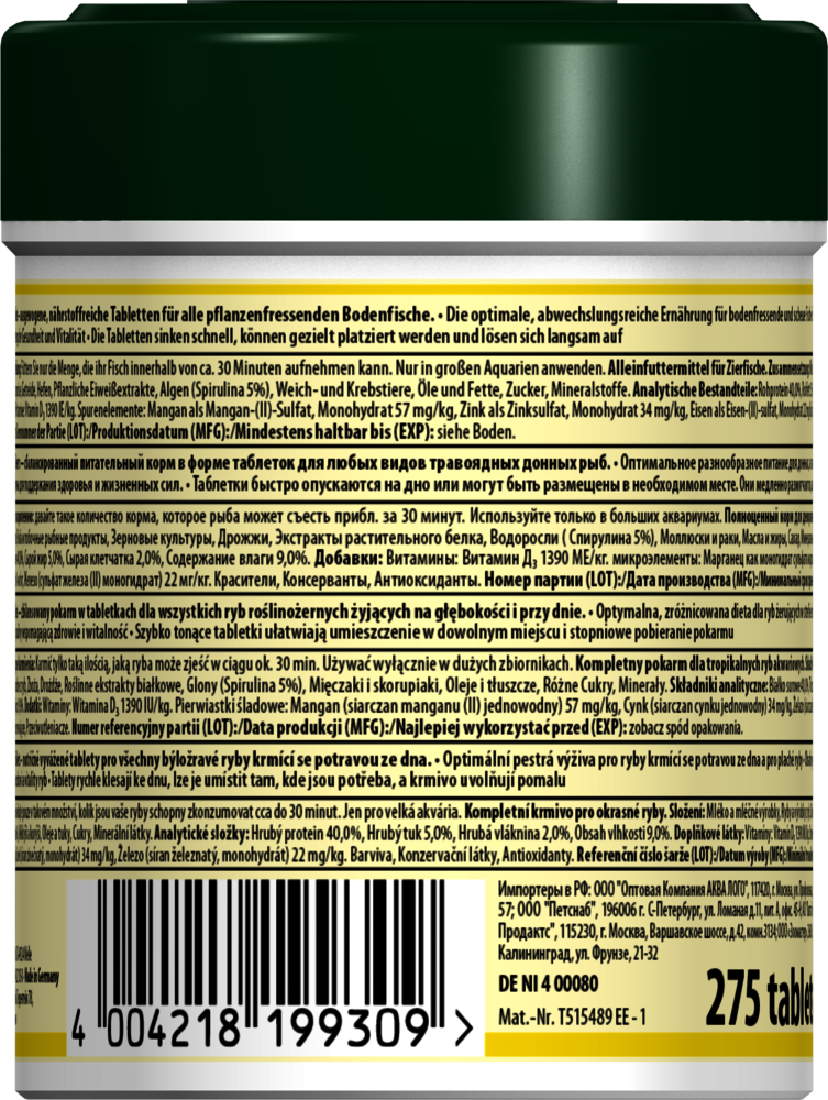 TetraPlecoTablets (таблетки) 275таб. Основной корм для сомиков и "водорослеедов" со спирулиной