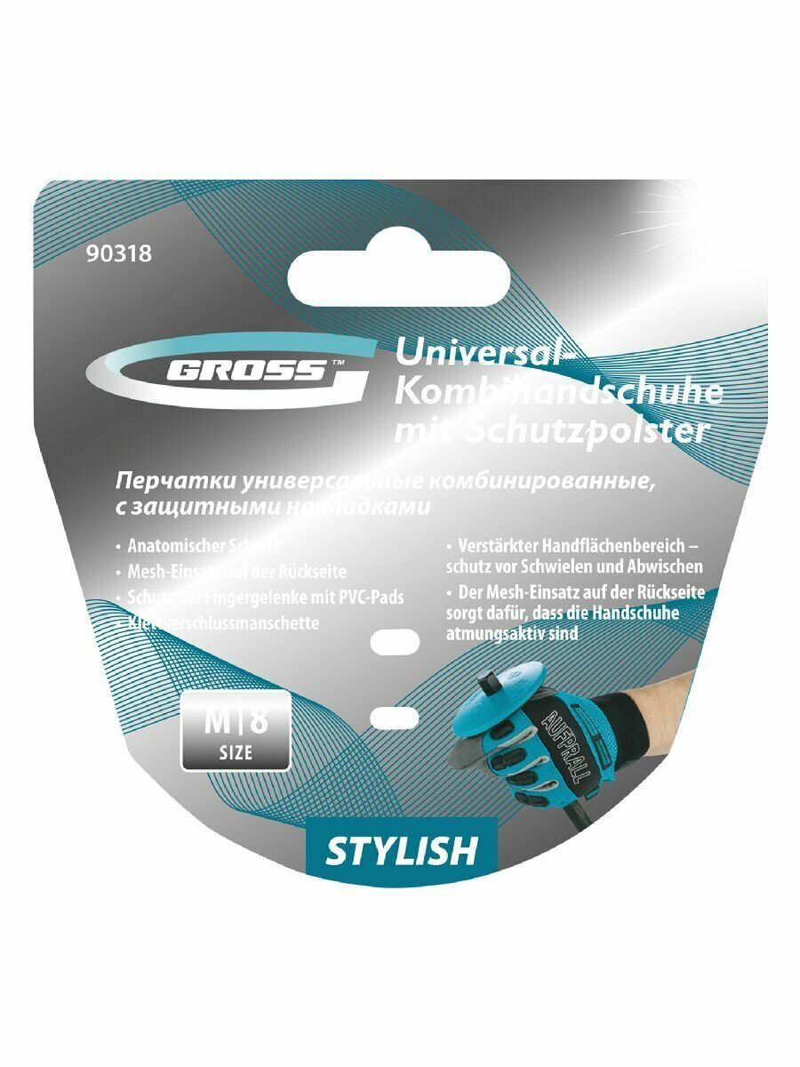 GROSS Перчатки универсальные комбинированные, с защитными накладками, stylish, размер m (8) 90318