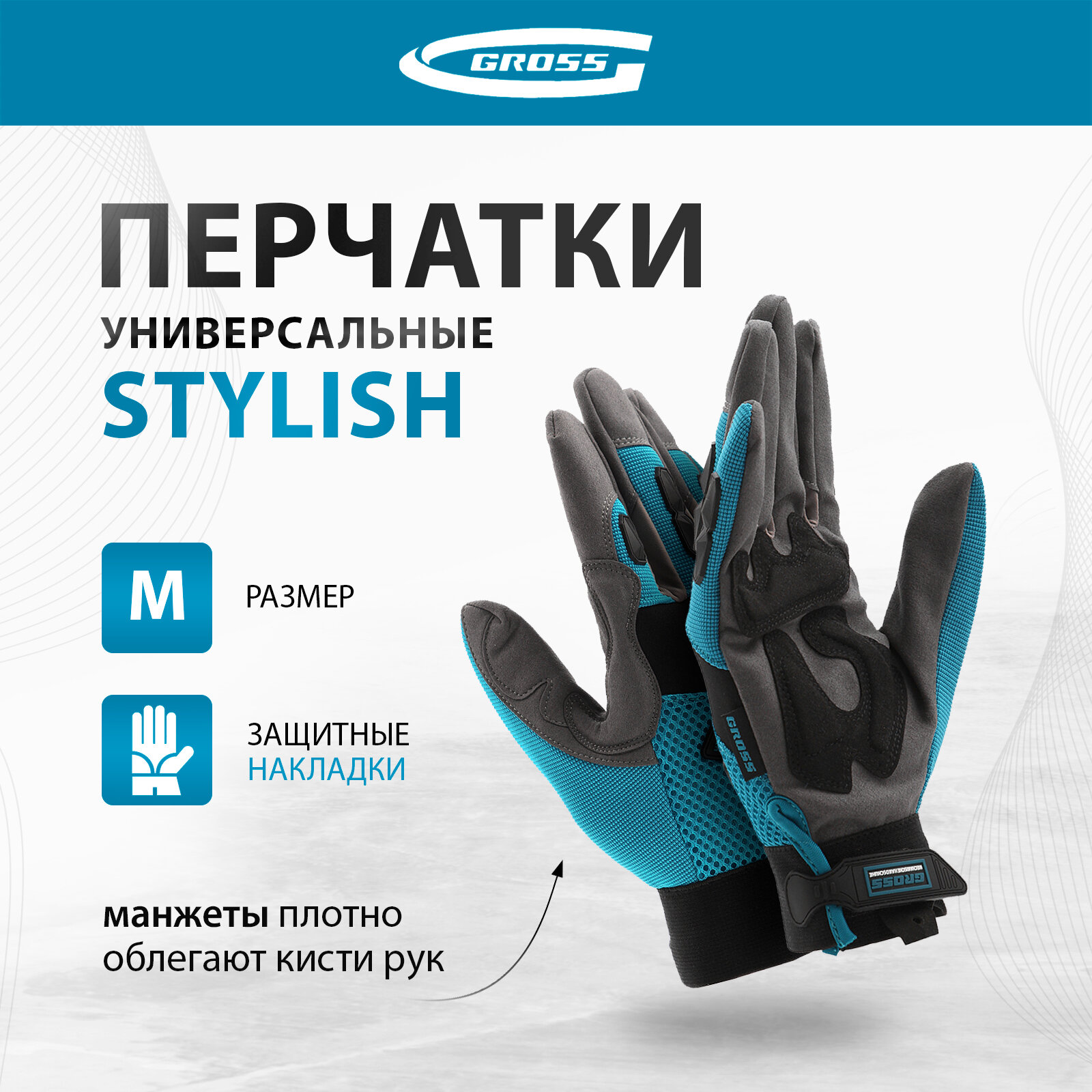 Перчатки универсальные комбинированные, с защитными накладками, STYLISH, размер M (8) Gross