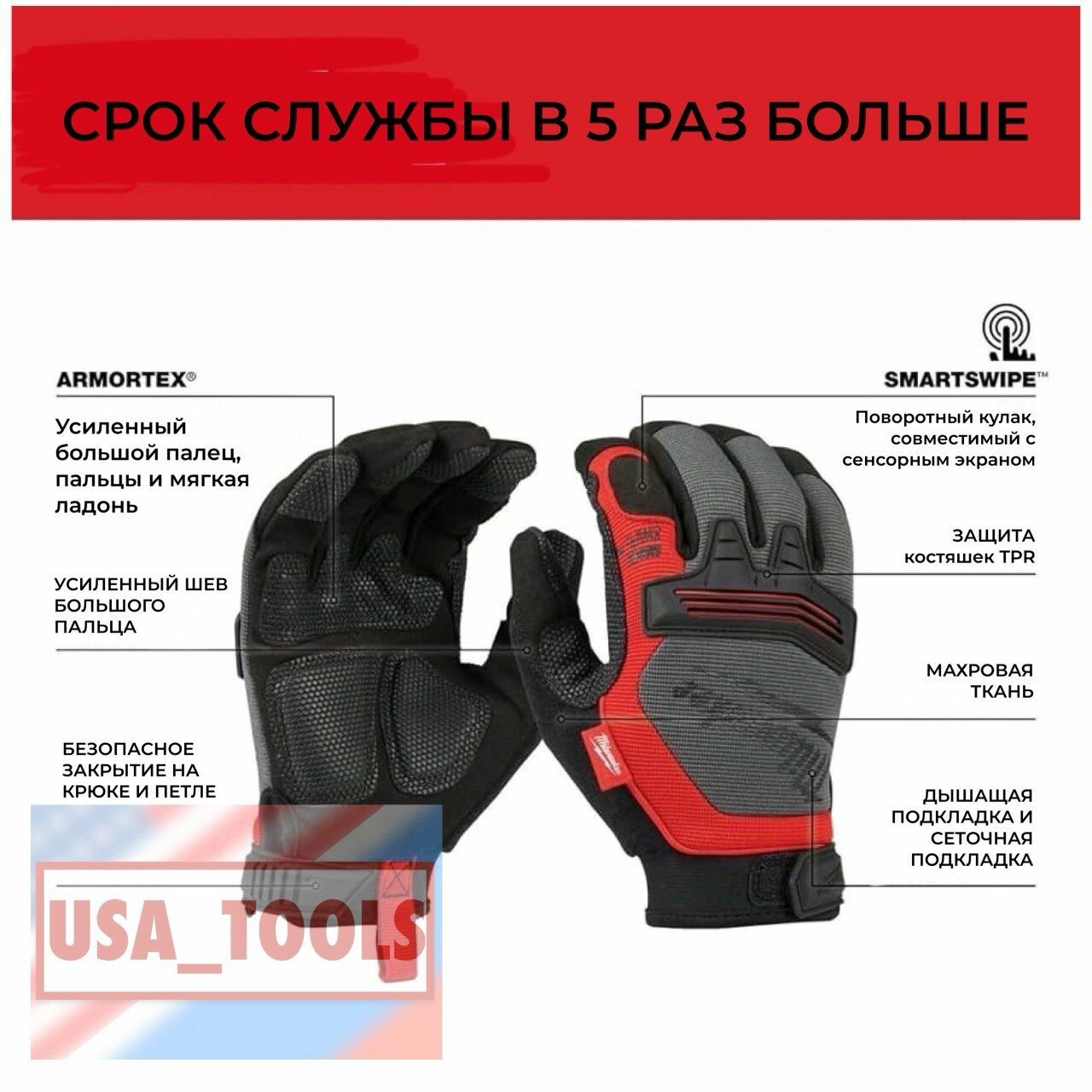 Перчатки строительные прочные защитные Demolition Размер M Milwaukee 48-22-8731 интересное: