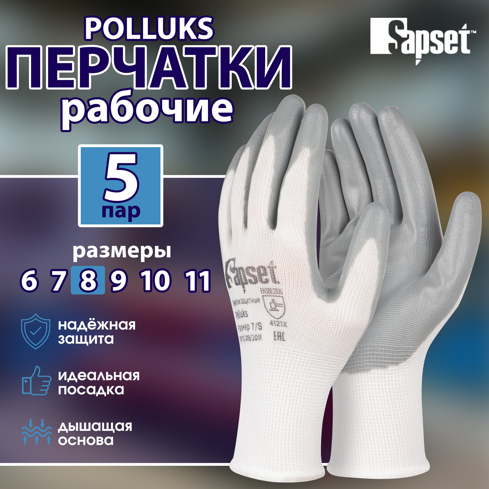 Перчатки защитные Sapset Polluks с покрытием из нитрила, размер M/8 - 5 пар интересное: