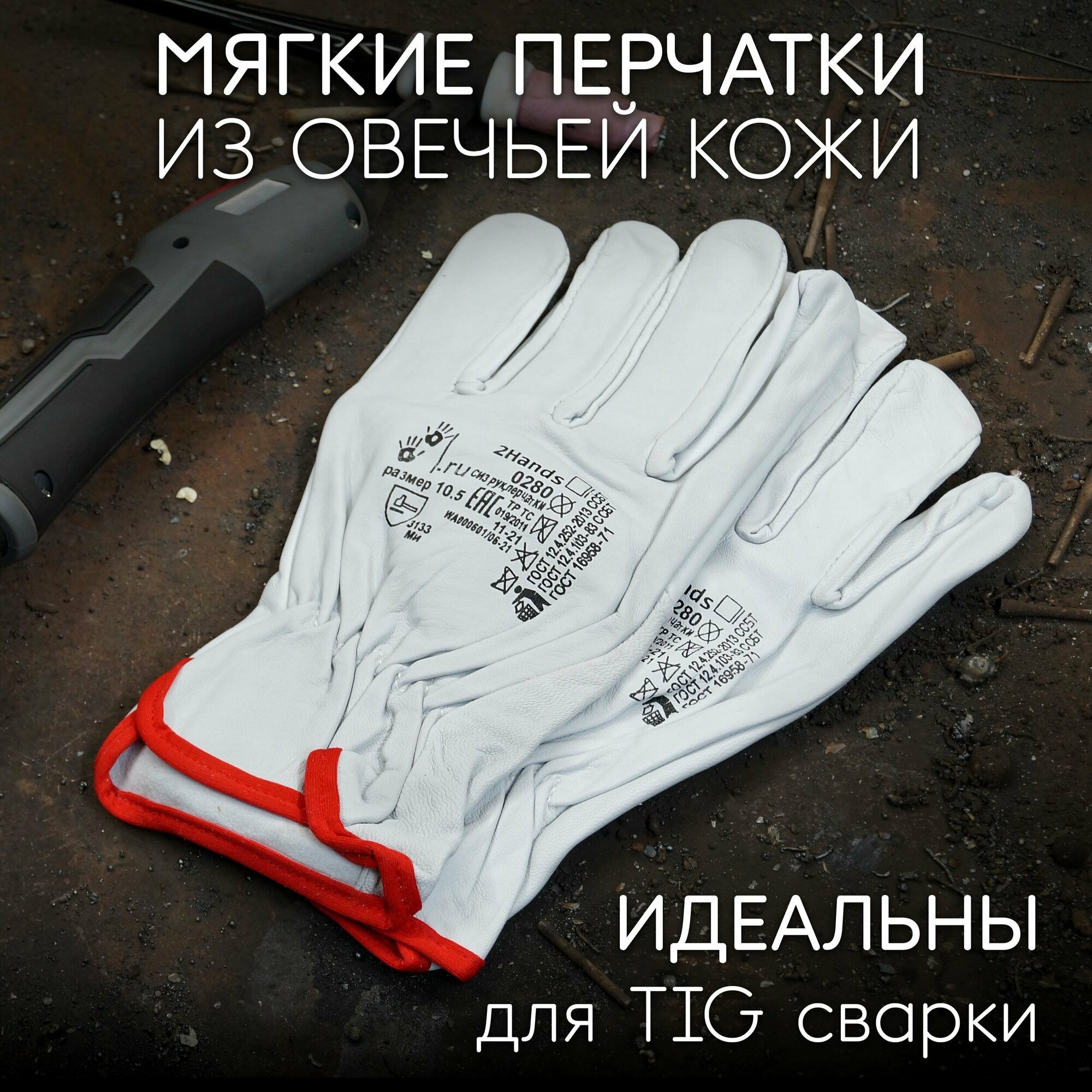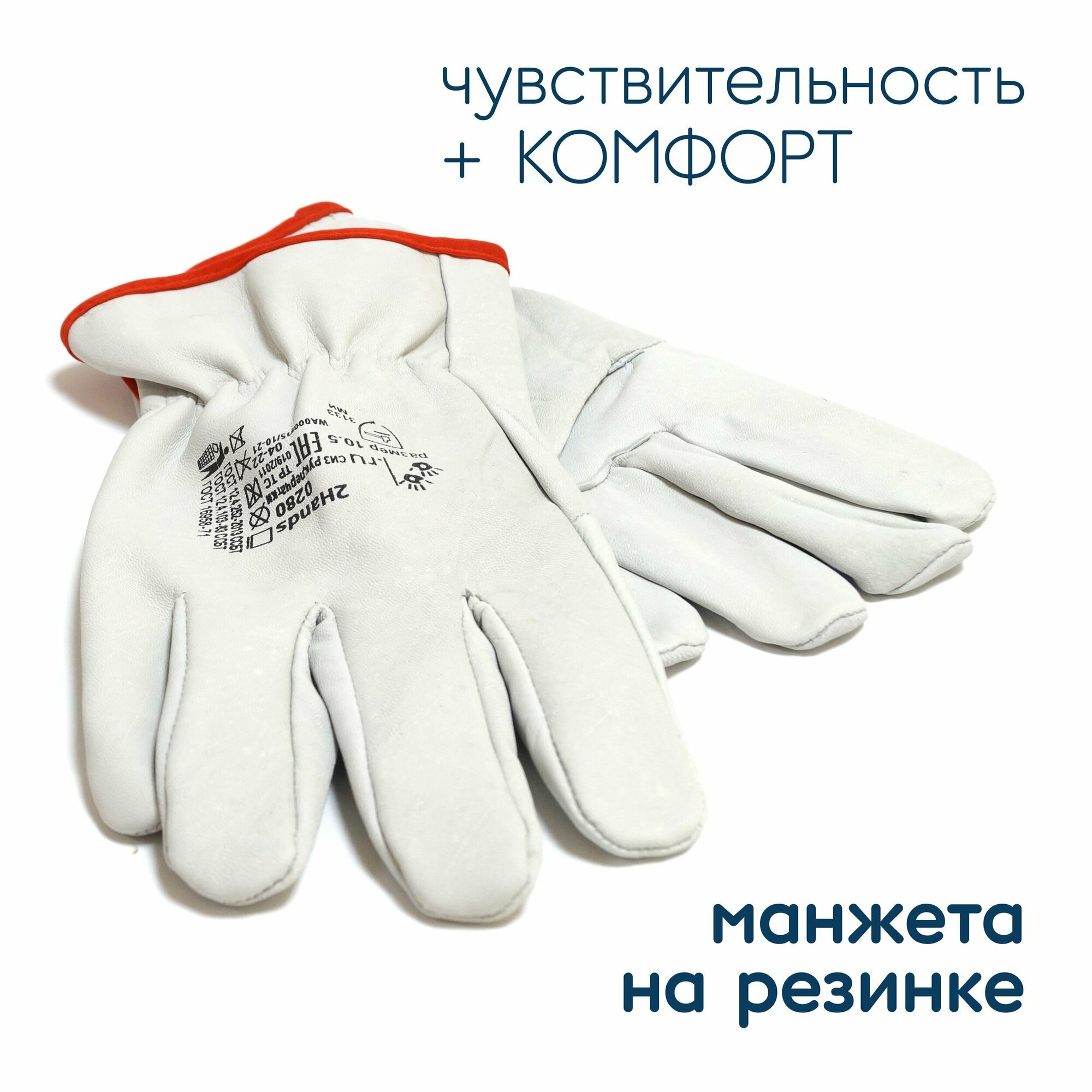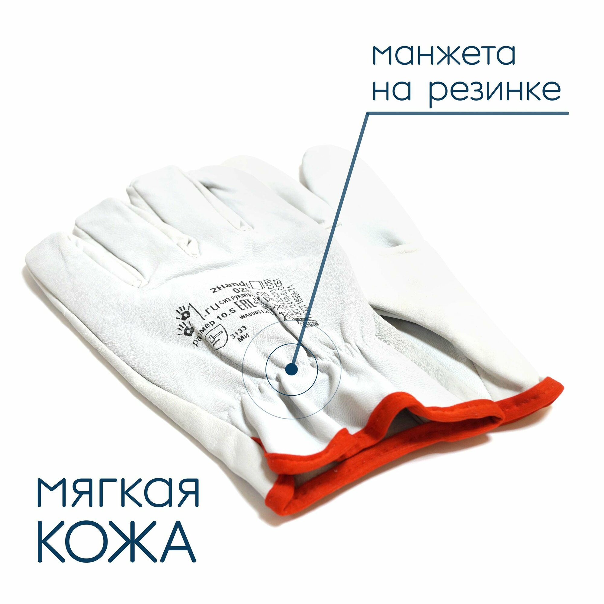 | Материал перчаток | мягкая кожа сорта АВ (1,2 мм +/- 0,2 мм) белого цвета |