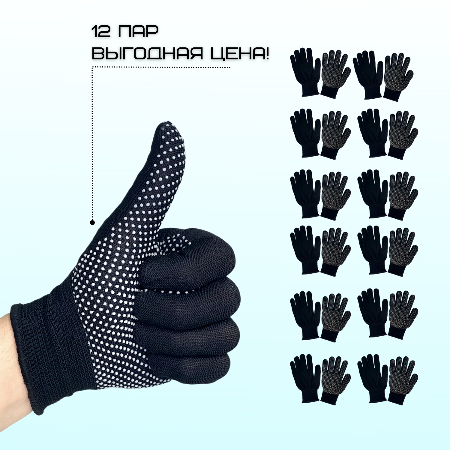 Перчатки защитные рабочие с микроточкой ПВХ, размер: Универсальный. 12 пар. интересное: