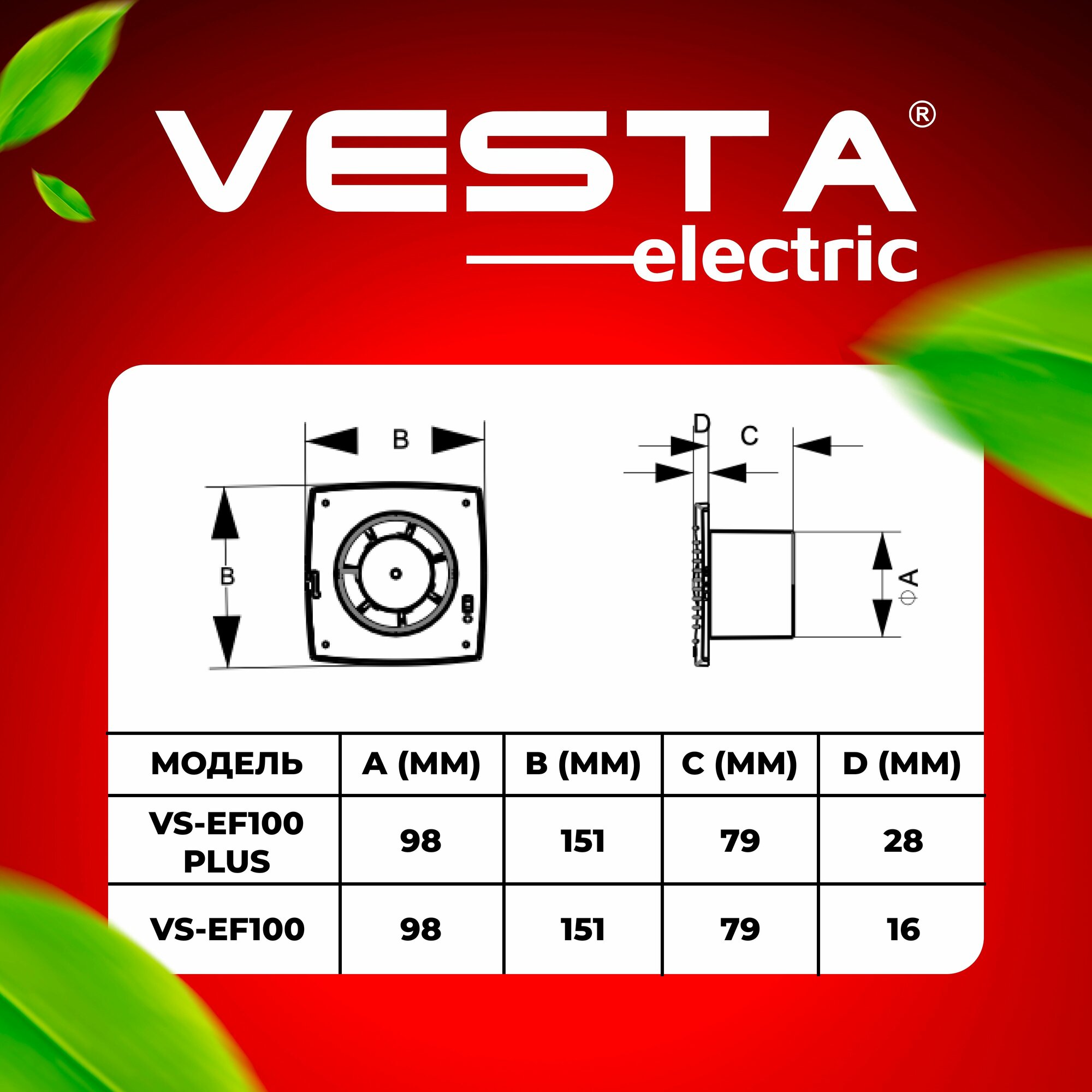 Вентилятор вытяжной Vesta-Electric EF-100 FLEF000000103P