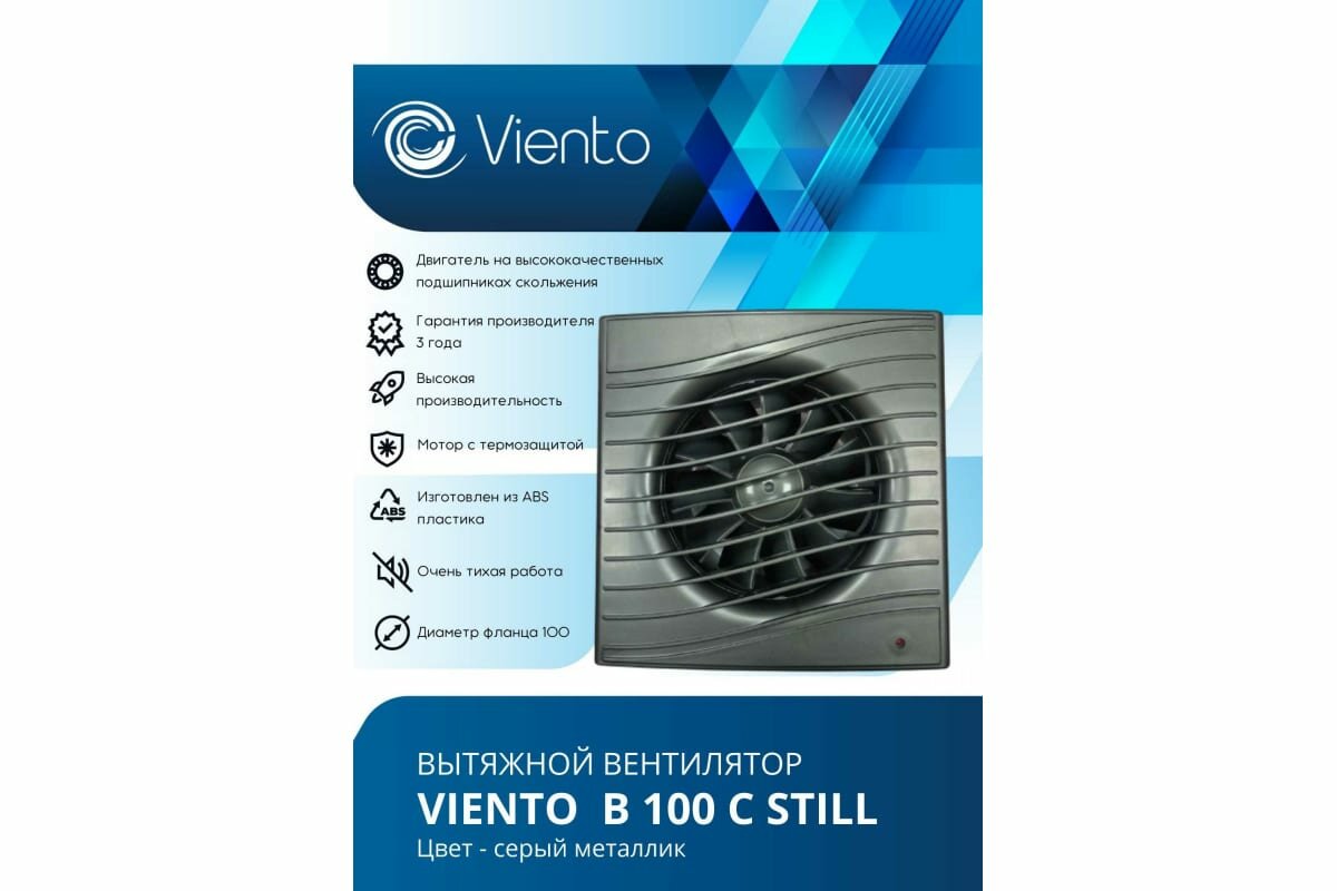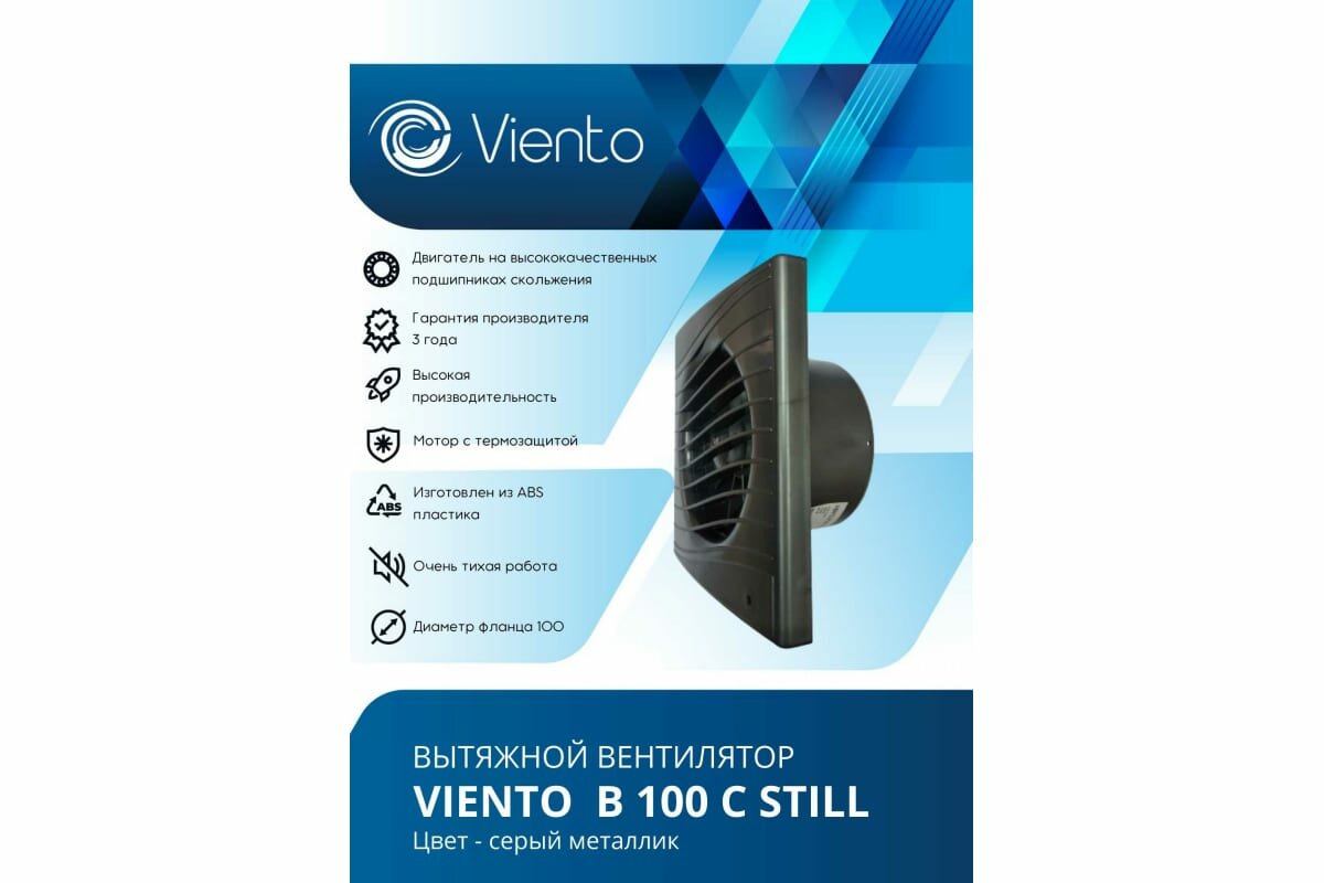 Вентилятор вытяжной настенный, Viento, установочный диаметр 100 мм, 14 Вт, 130 м³/ч, Волна, виенто В100С STILL gray интересное: