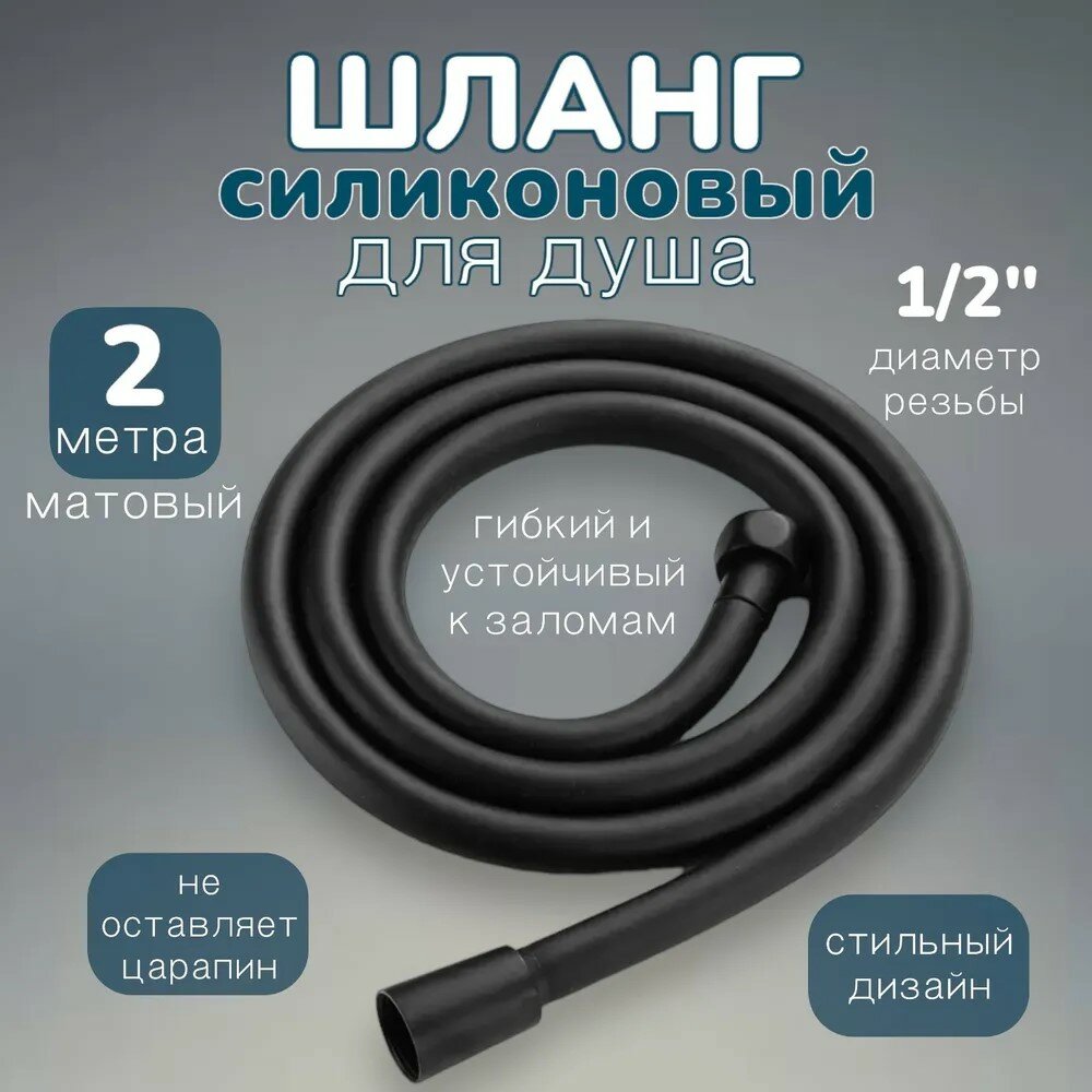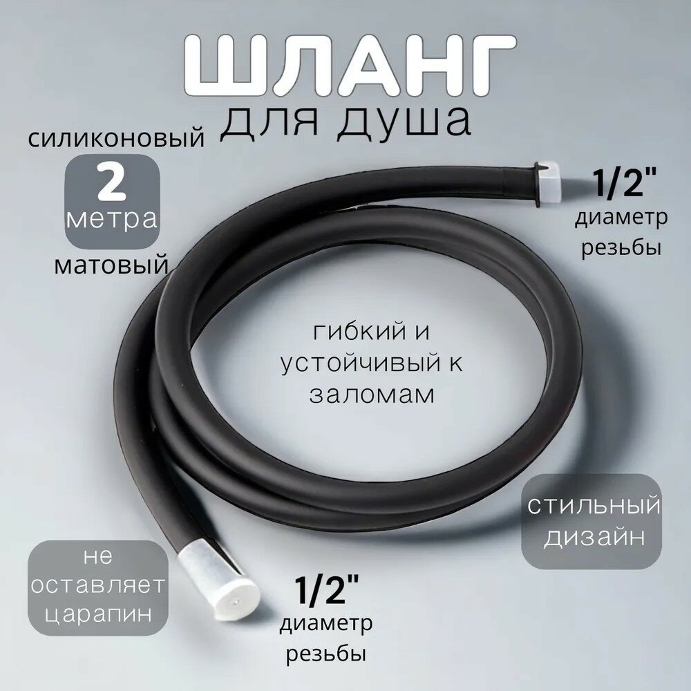 Шланг для душа черный с защитой от намотки, медная гайка, 1/2", длина 2 метра интересное: