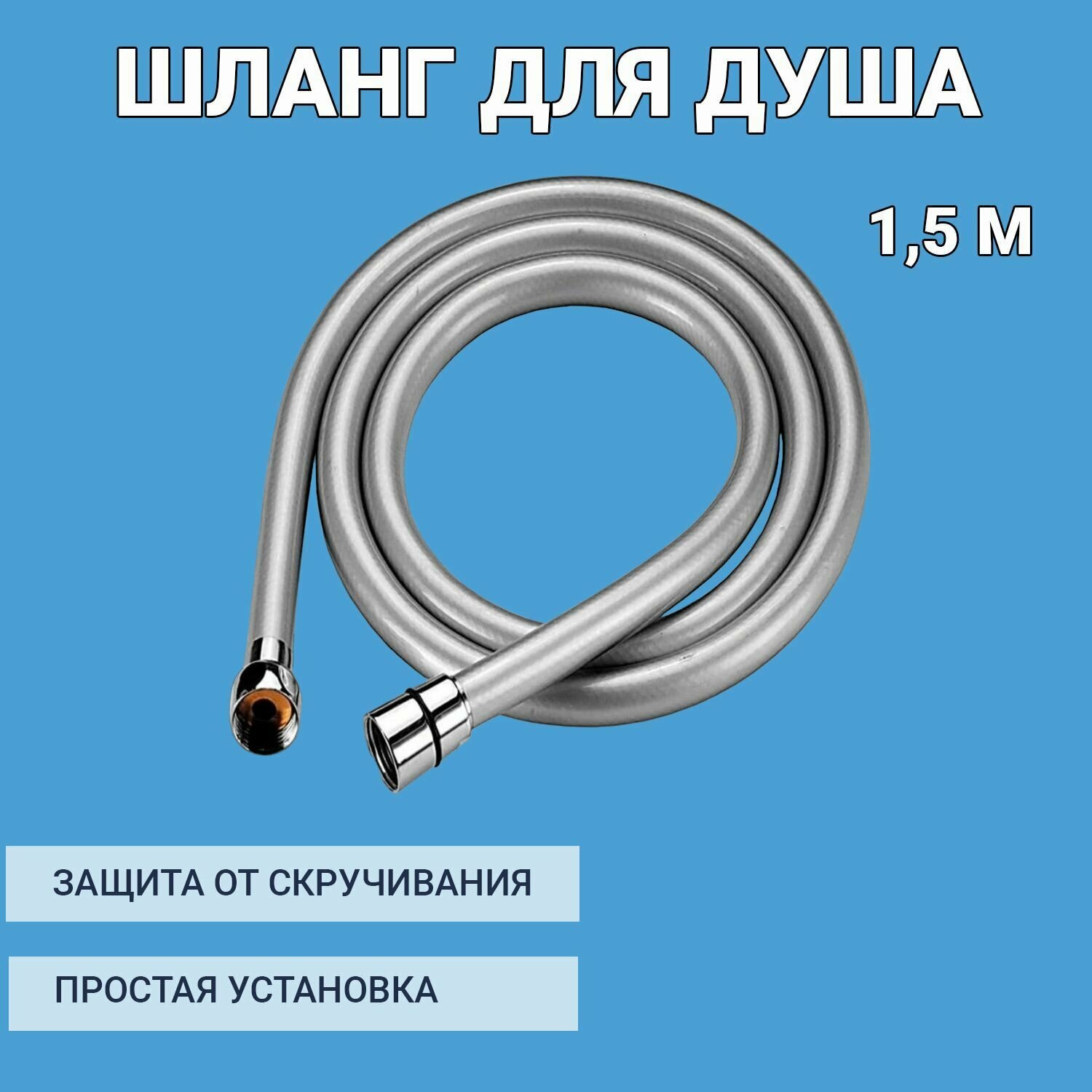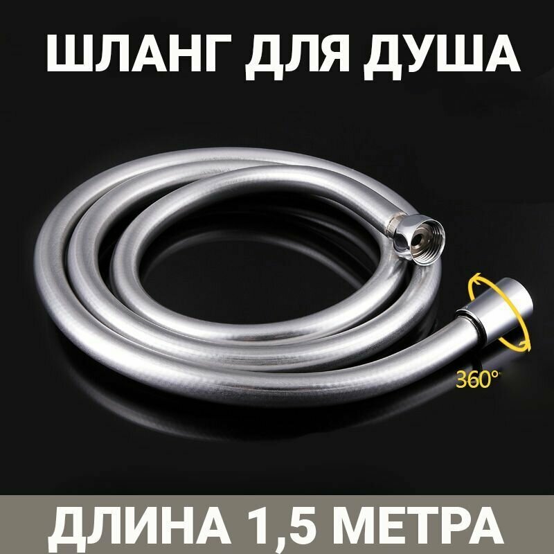 Шланг для душа серебристый, защита от намотки, медная гайка, 1/2",длина 1,5 метра интересное: