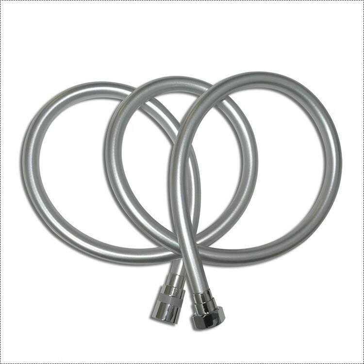 Шланг для душа серебристый, устойчивый к изломам, силиконовый, медная гайка, 1/2",длина 2 метра