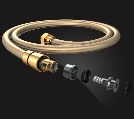 Шланг для душа (лейки) Elghansa SH012-Gold армированный ПВХ, 150см, резьба 1/2, гайка с вращением 360 градусов, 5-ти слойный силиконовый шланг интересное: