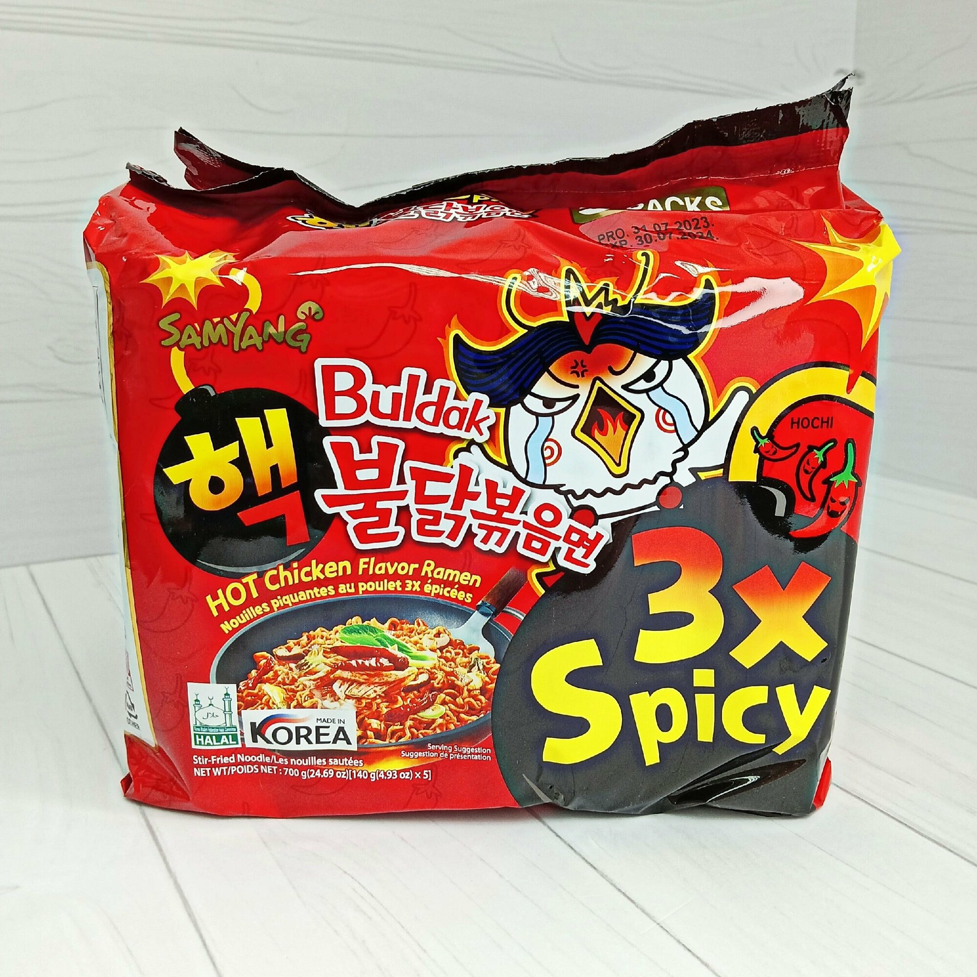 Лапша Самьянг x3 Spicy, Самая острая Корейская Огненная лапша, Халяль, 5 пачек по 140г