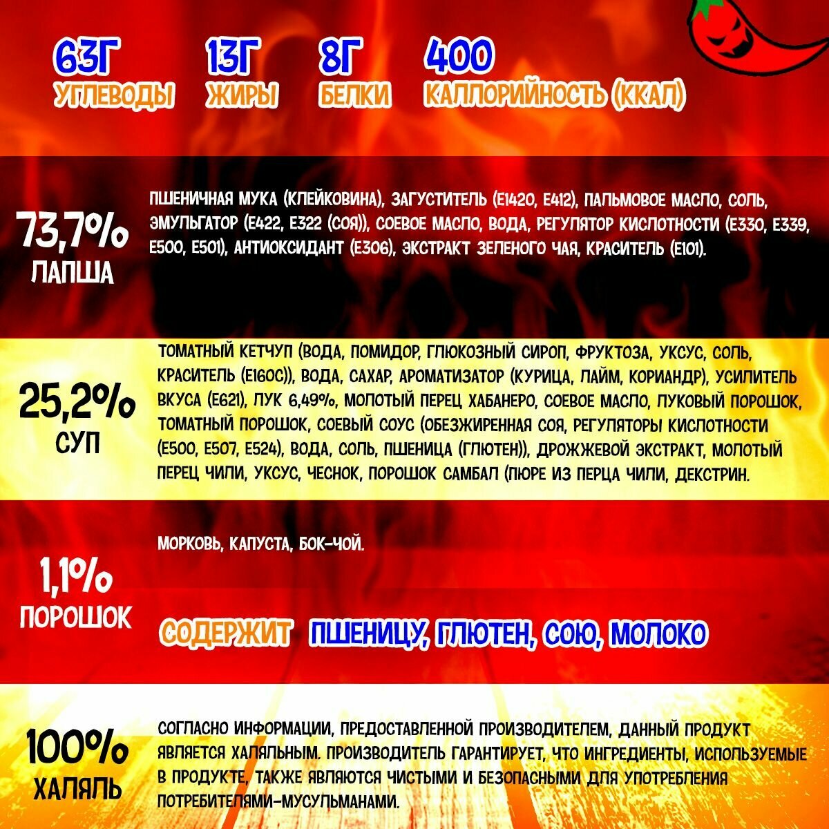 | Тип питания | халяльный продукт |
