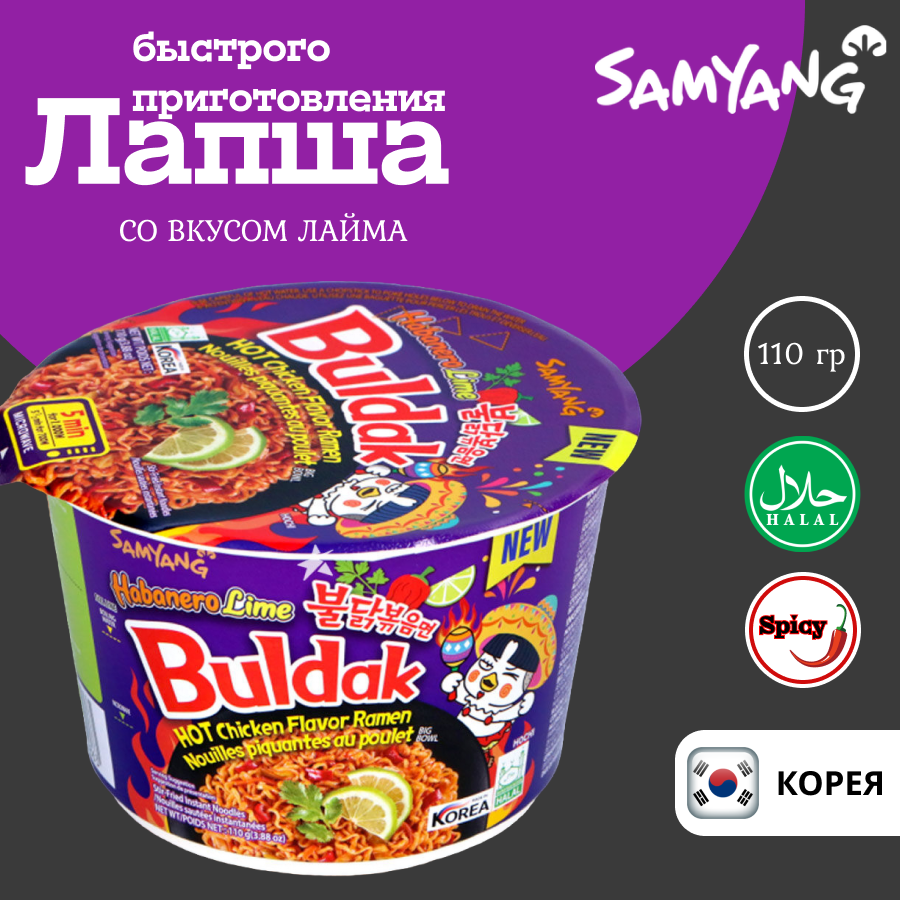 Купить Лапша Samyang Острая курица Хабанеро и Лайм 110 г
