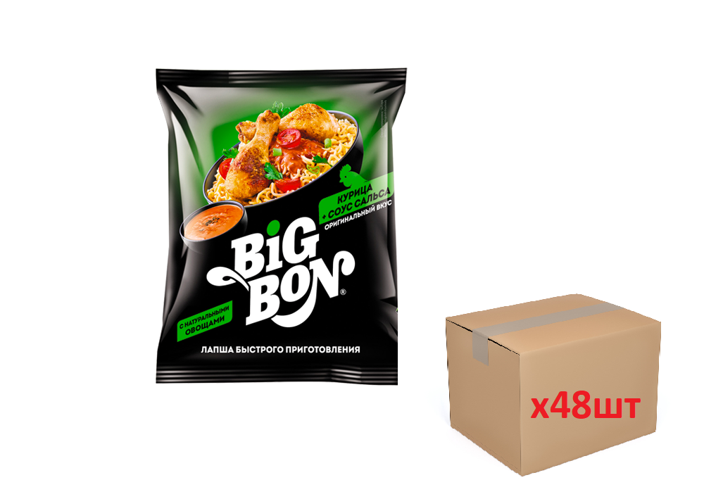 Купить Упаковка 48 штук Лапша Big Bon курица с соусом "Сальса" пак 75г