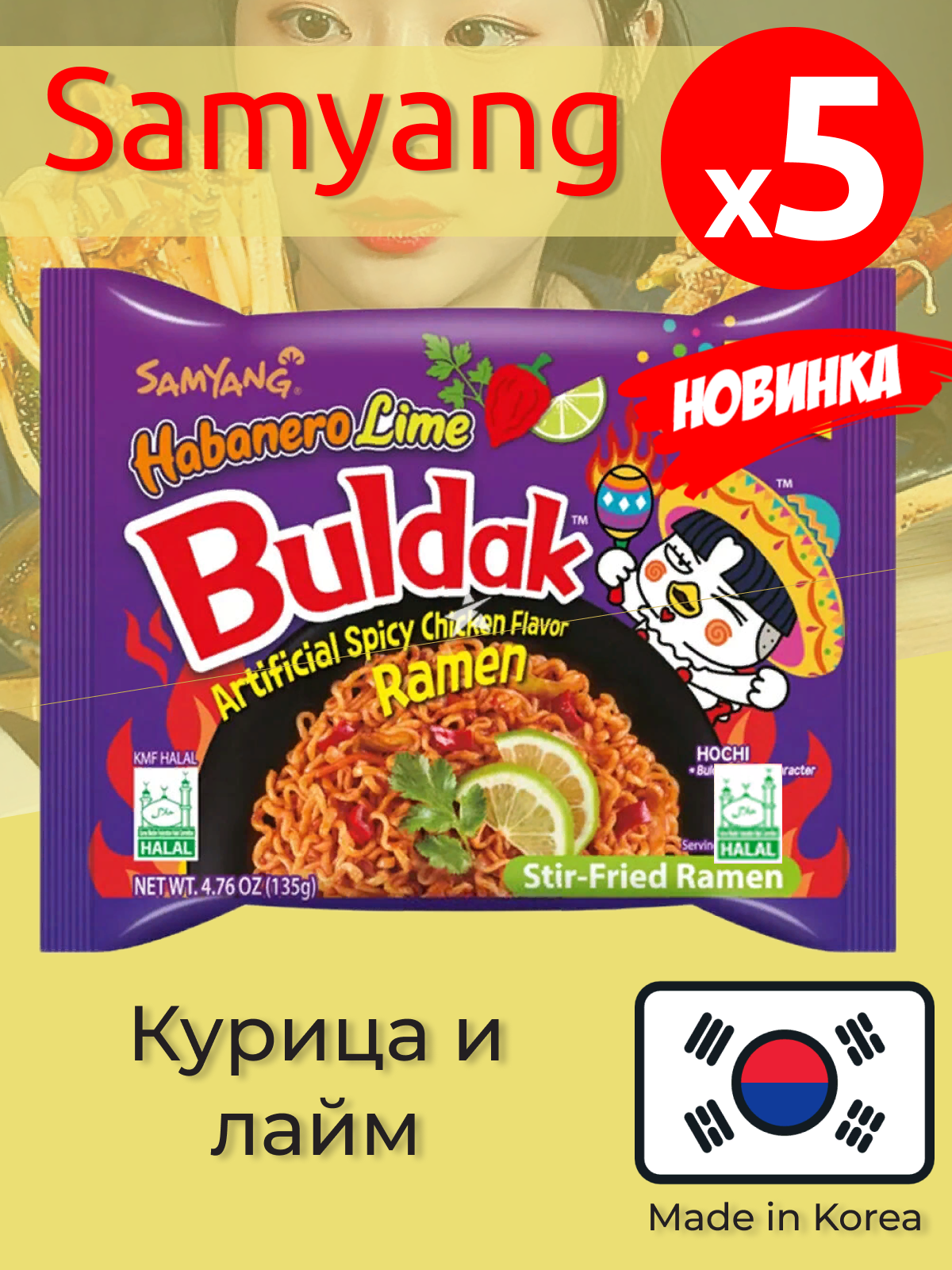 Купить Лапша быстрого приготовления Samyang Habanero Lime со вкусом лайма, 5 х 135 г