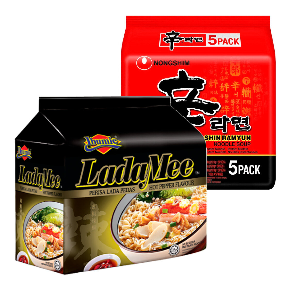 Купить Набор лапши 10 шт, Шин Рамен Nongshim, пачка 120 г+Ми Суп Белый перец Ibumie, пачка 75 г