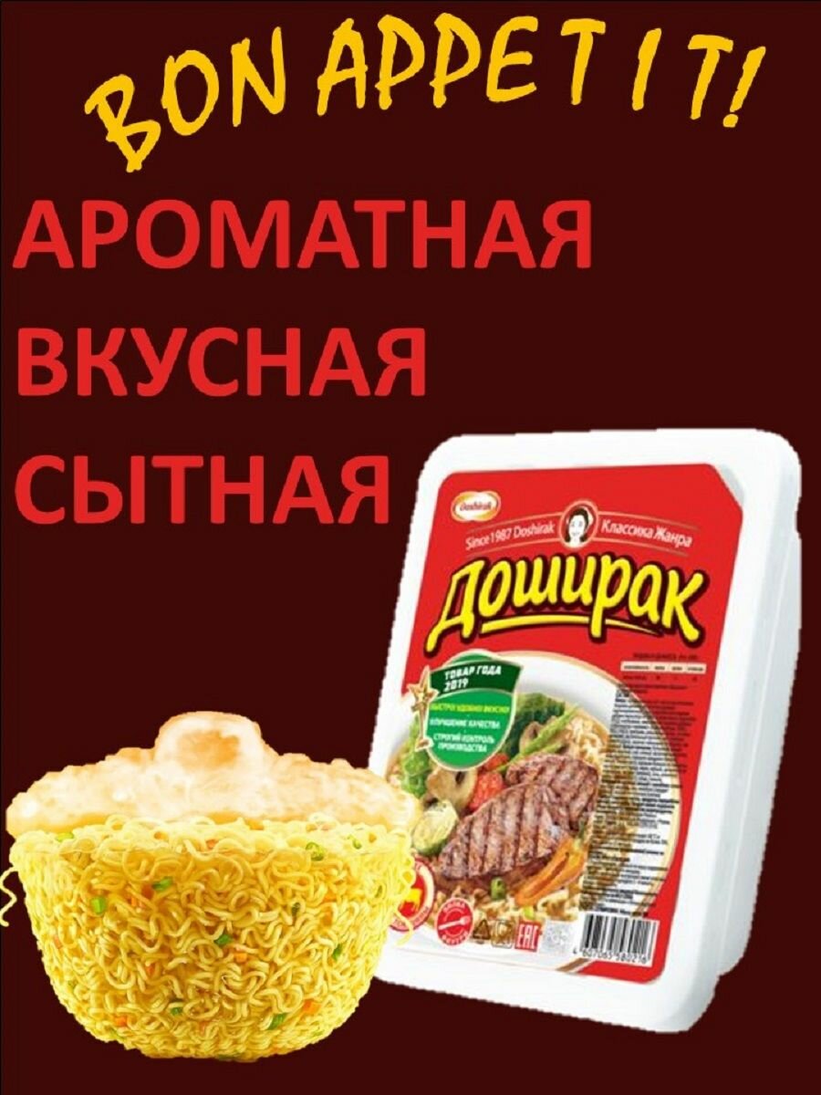 Ниже Вы можете прочитать отзывы на Doshirak Лапша быстрого приготовления говядина, 24 шт, 90 г, ознакомится с подробными характеристиками, посмотреть интересные обзоры и фотографии на Doshirak Лапша быстрого приготовления говядина, 24 шт, 90 г.