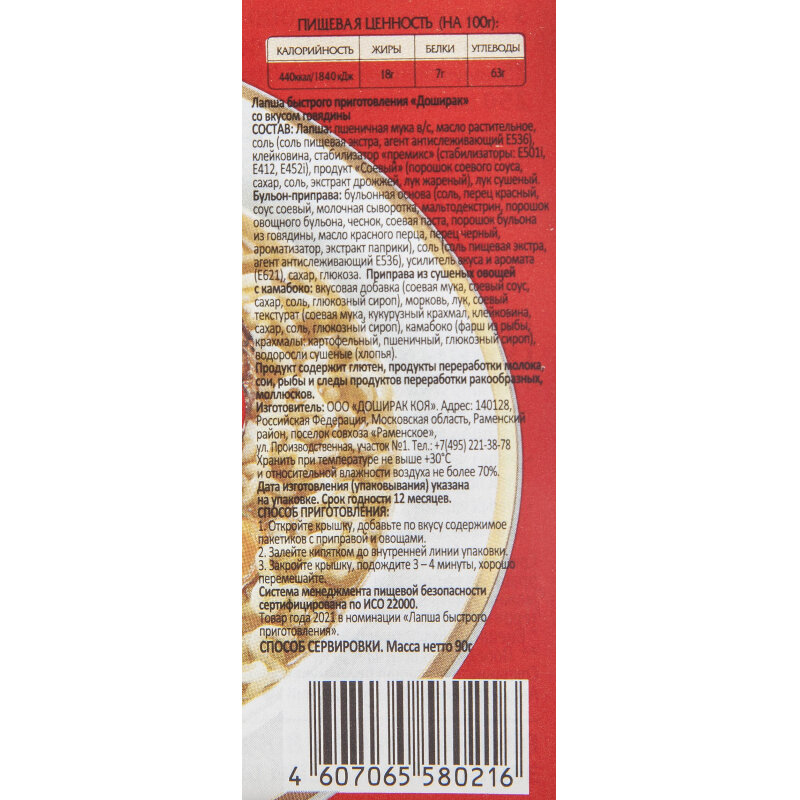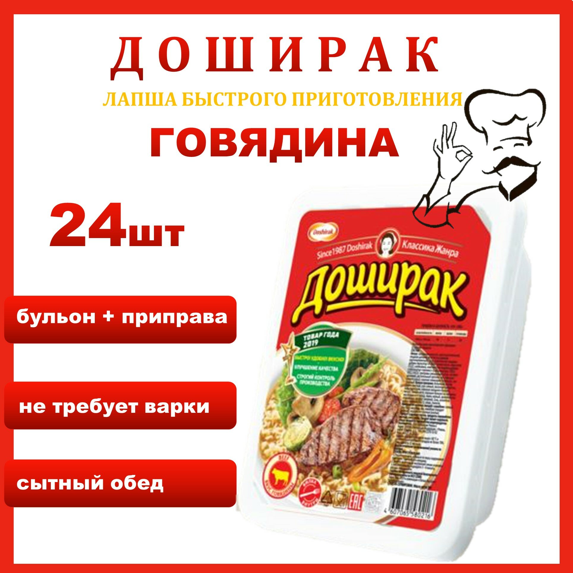 Doshirak Лапша быстрого приготовления говядина, 24 шт, 90 г интересное:
