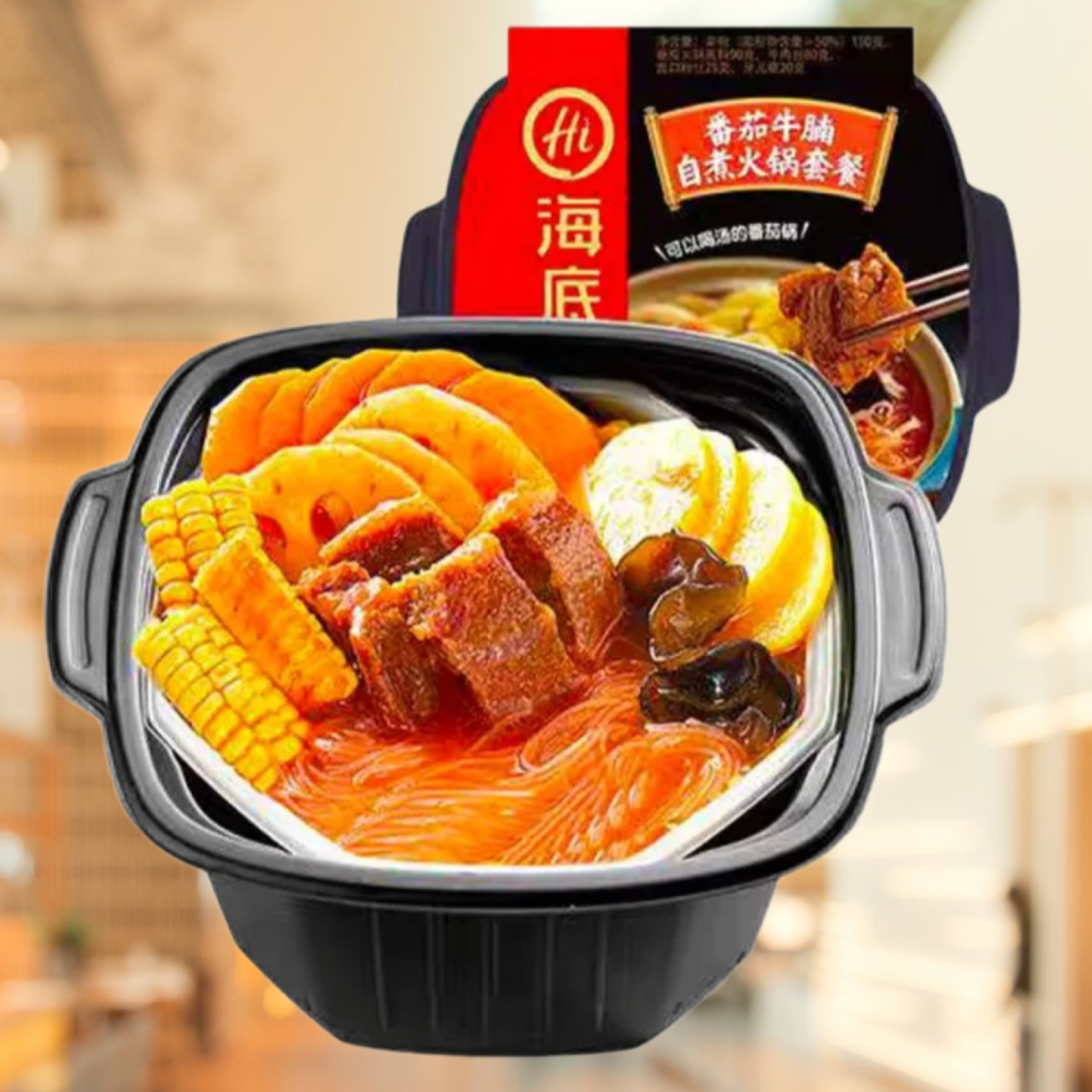 Китайская Саморазогревающаяся лапша Haidilao HotPot с говядиной и острым томатным соусом 435 гр