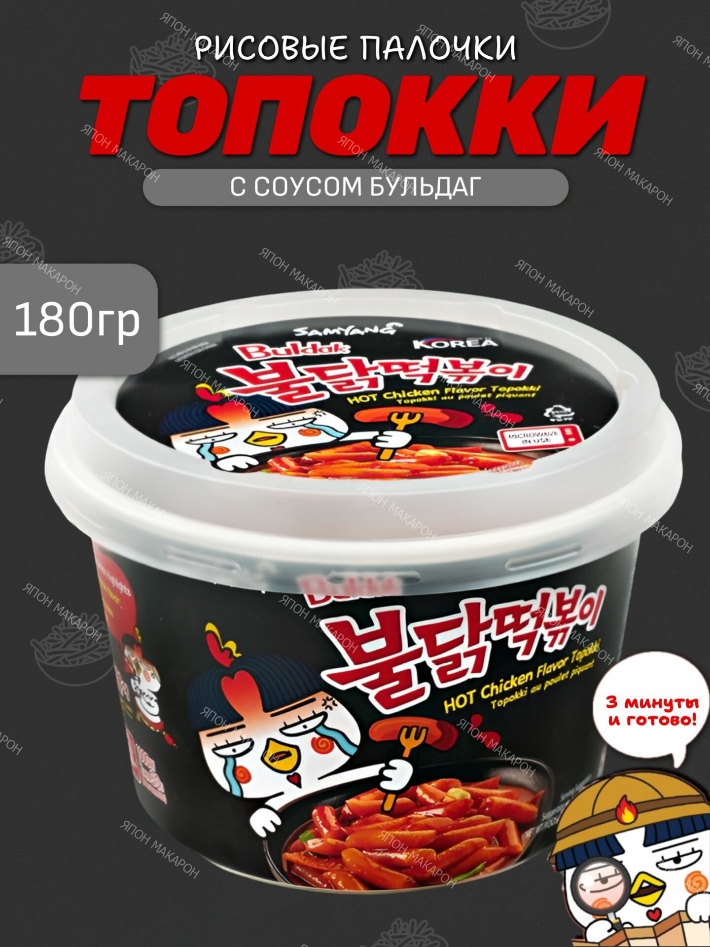 Samyang Рисовые палочки Токпокки со вкусом острой курицы в соусе бульдаг. Японские сладости интересное: