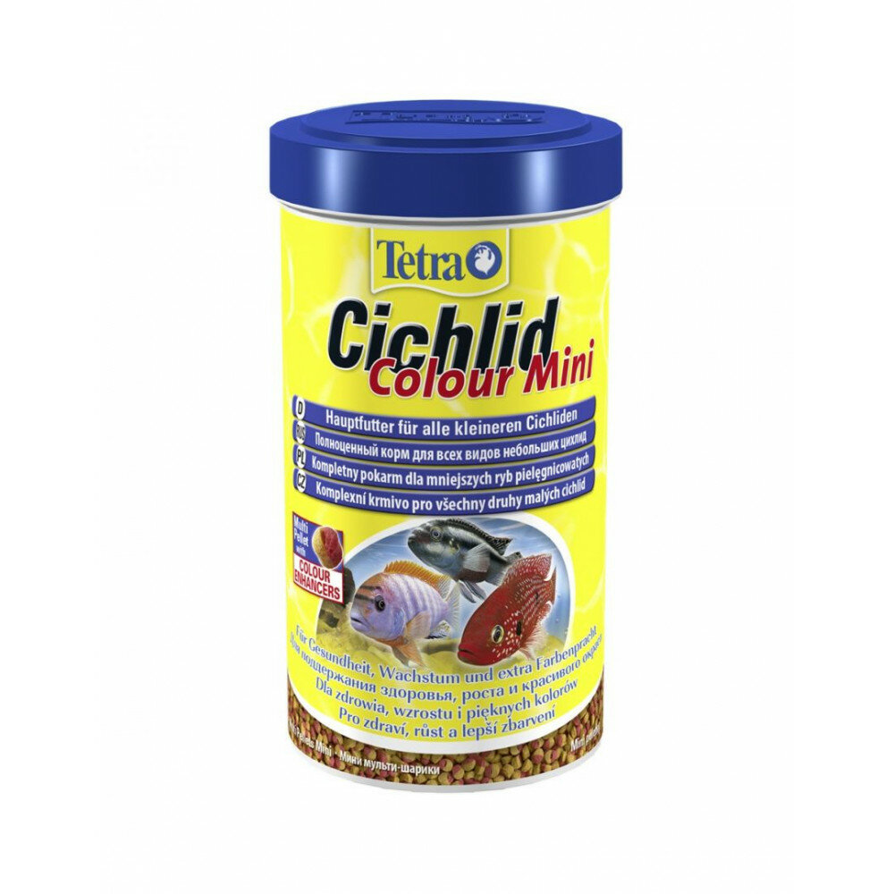 Корм Tetra Cichlid Colour Pellets Mini 500 мл, мини-шарики для небольших цихлид, усиливает яркость окраски
