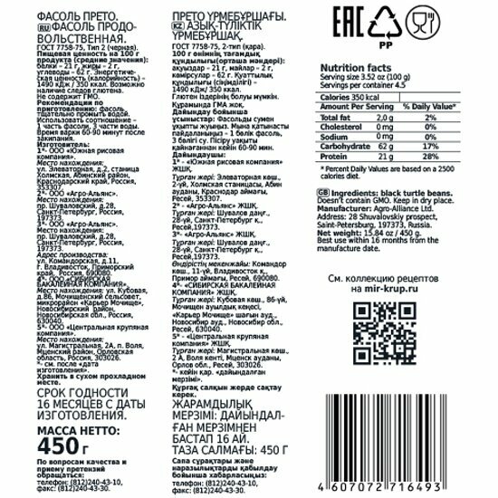 Фасоль черная Агро-альянс Прето " Экстра" 450 г интересное: