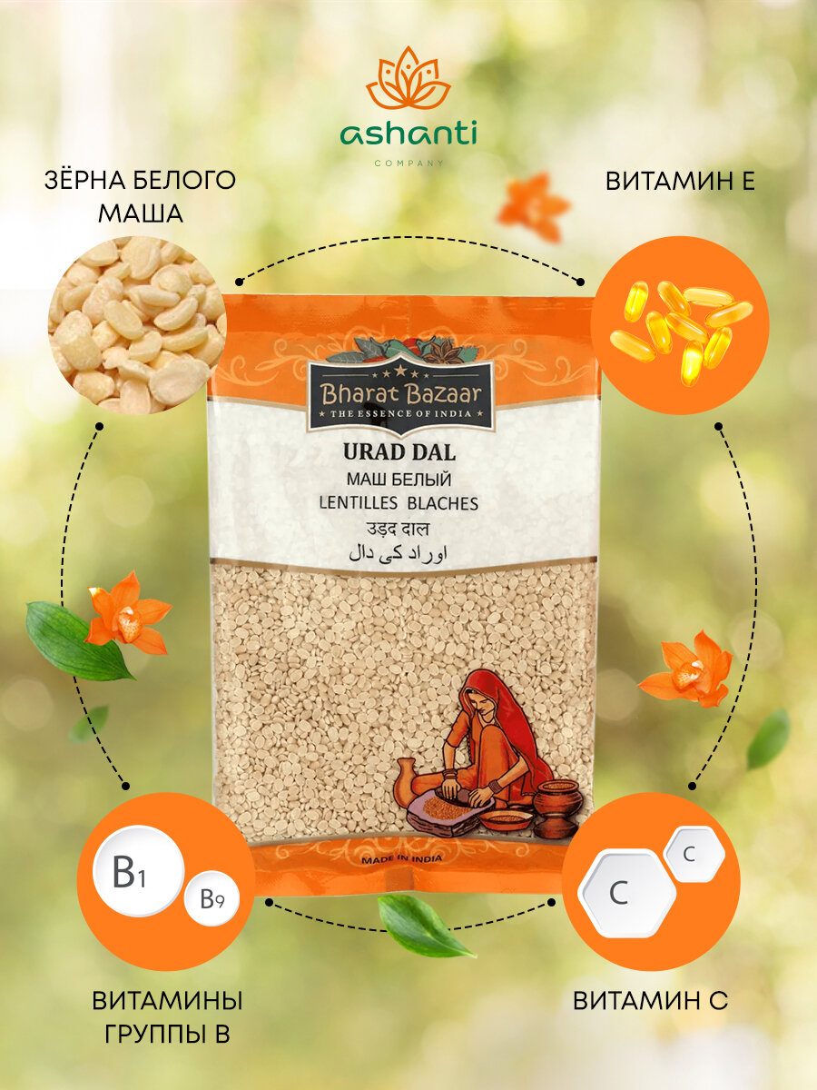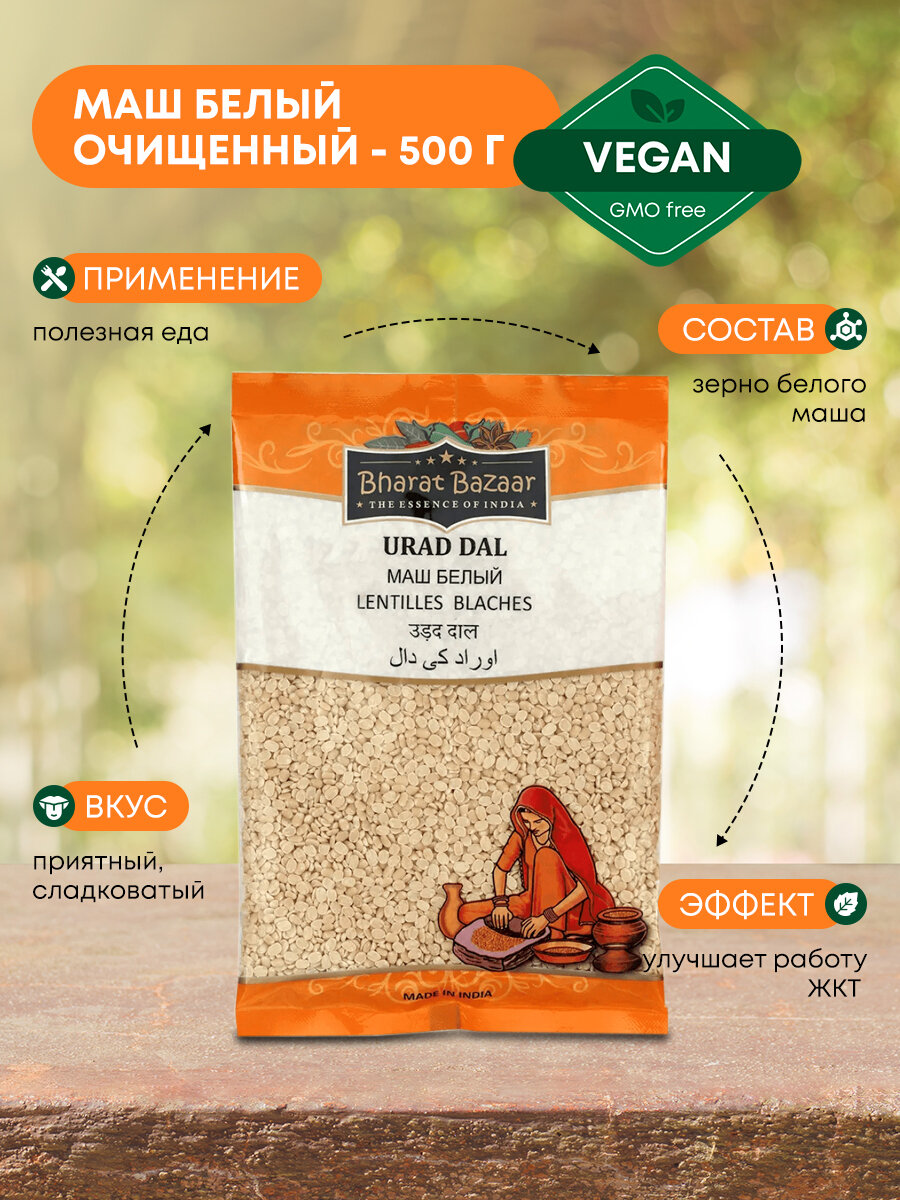 Маш белый Bharat Bazaar очищенный (Urad Dal), 500г интересное: