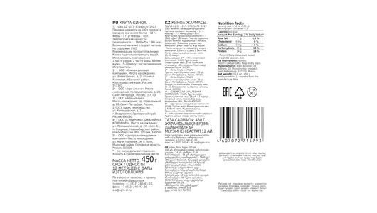 | Дополнительная информация | хранить не более 365 дней в сухом прохладном месте; возможно наличие следов глютена; без ГМО |