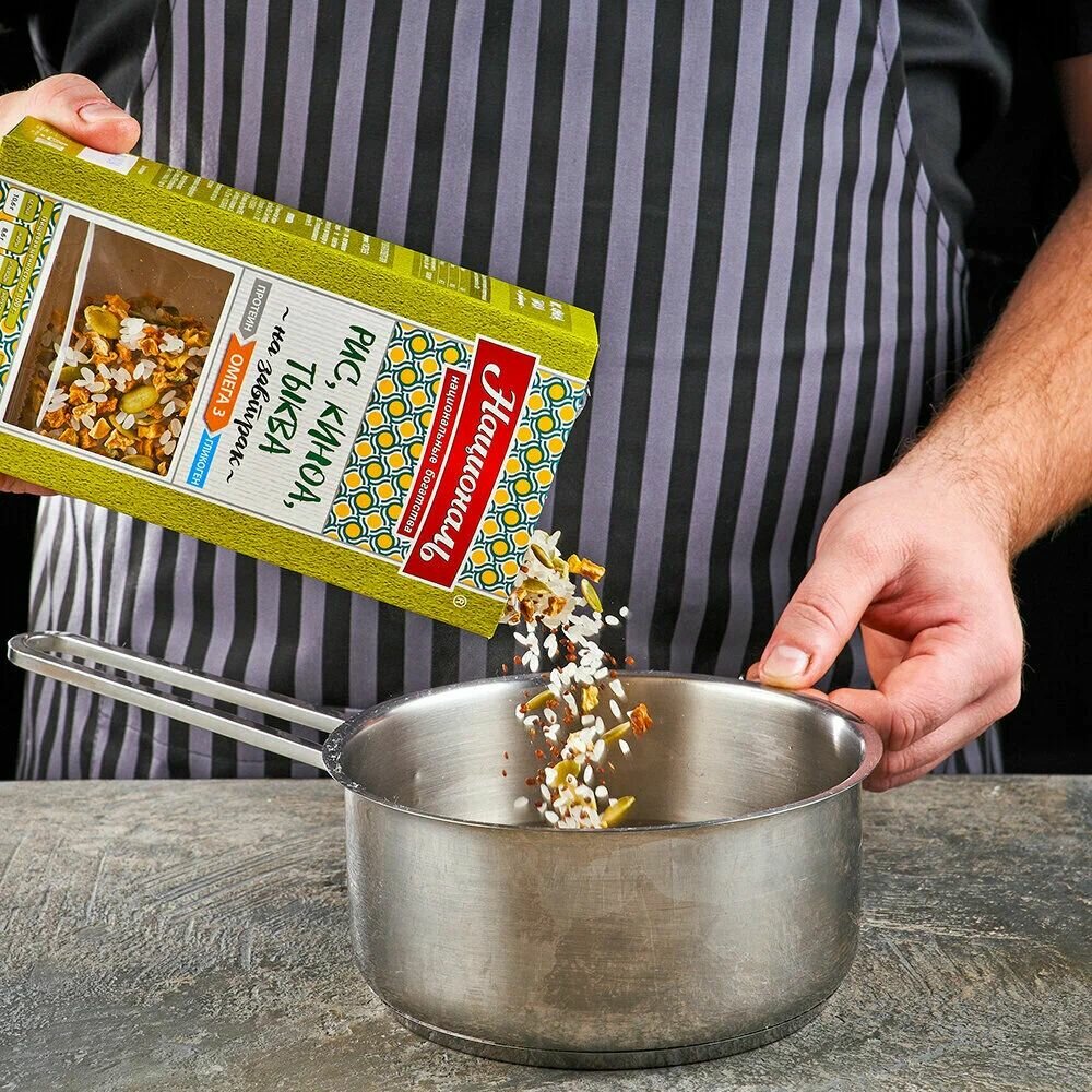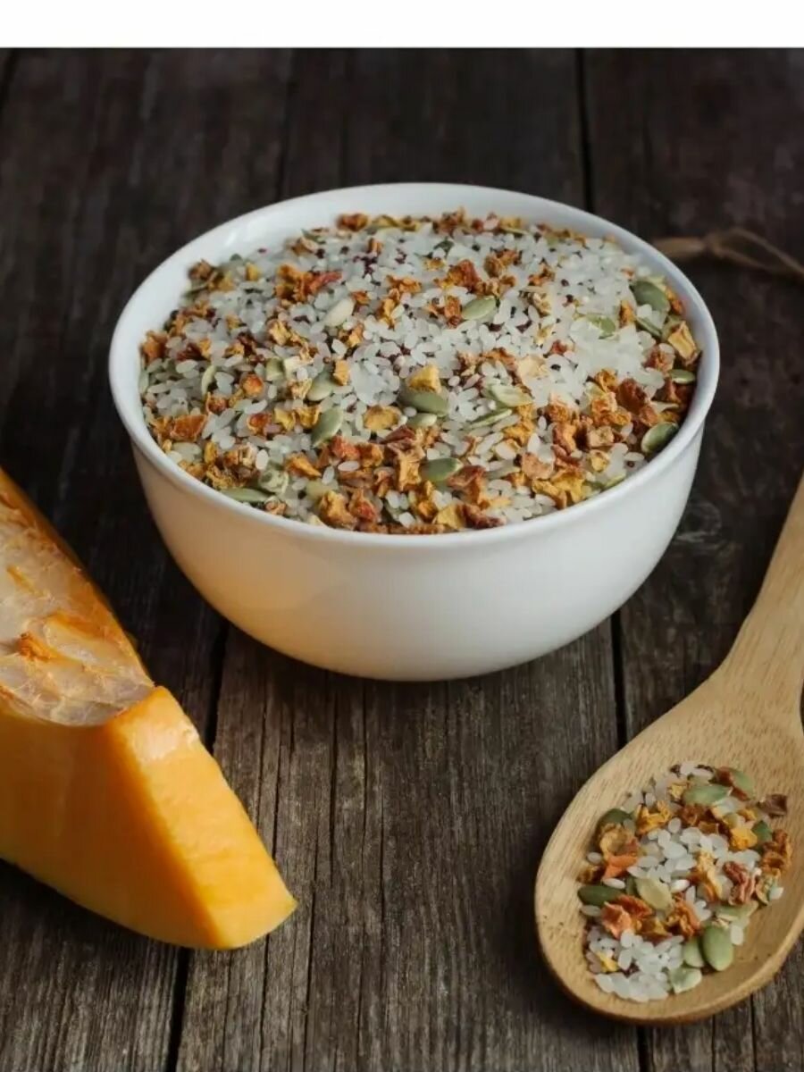 | Состав | Крупа рисовая шлифованная (рис среднезёрный), тыква сушеная, киноа красное, семена тыквы чищенные. |