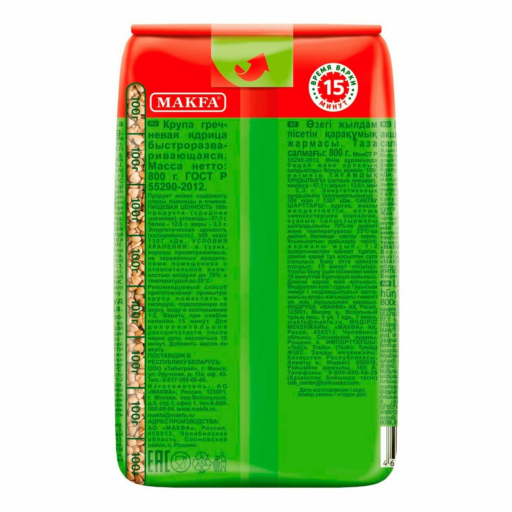 Крупа гречневая MAKFA 3 шт по 800гр интересное: