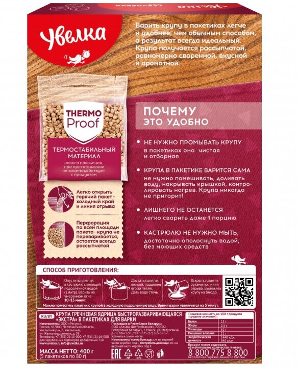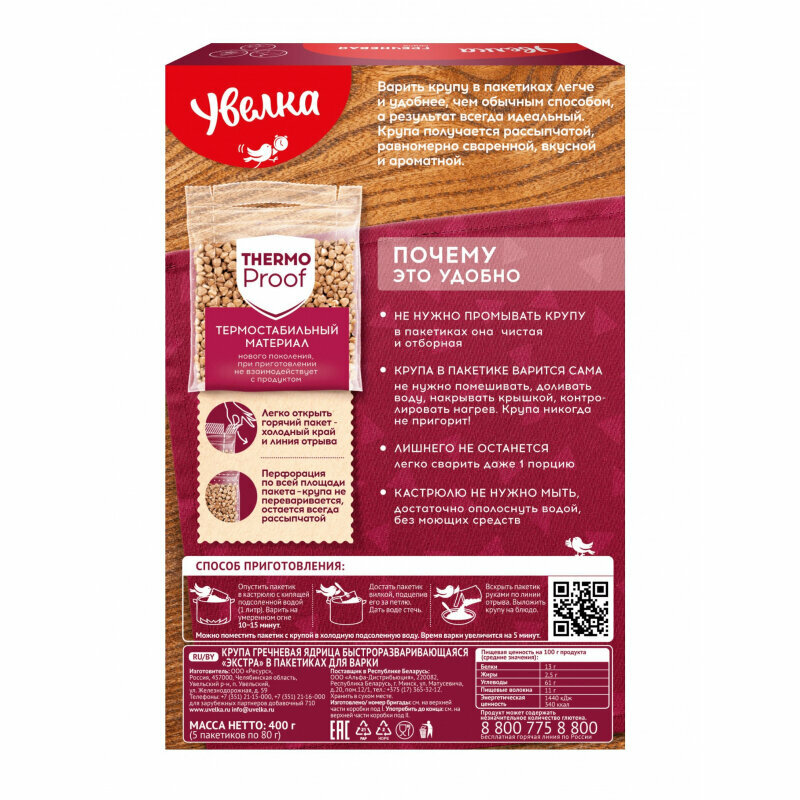 Гречневая ядрица Увелка Экстра 400г, 5 пакетиков х 80г интересное:
