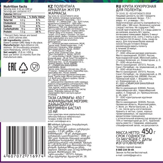 Кукурузная крупа Агро-альянс полента " Экстра" 450 г интересное: