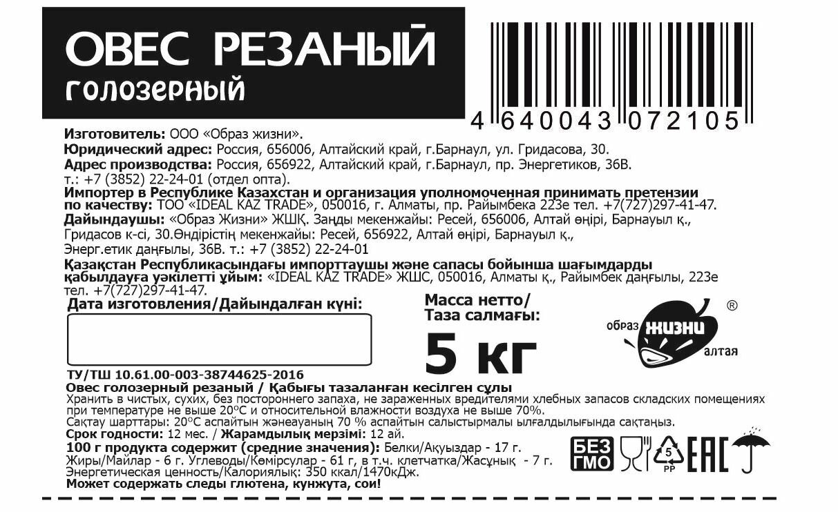 Овёс голозерный резаный, крупа овсяная цельнозерновая 5 кг интересное: