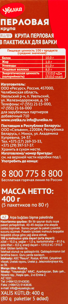 Увелка Крупа перловая, 5 пак х 80 г, 4 уп интересное: