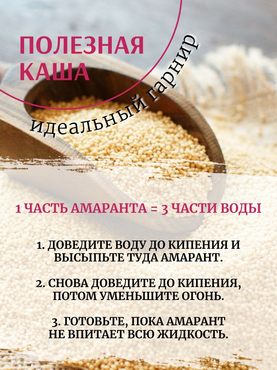 | Дополнительная информация | Амарант лучше есть сразу после приготовления |