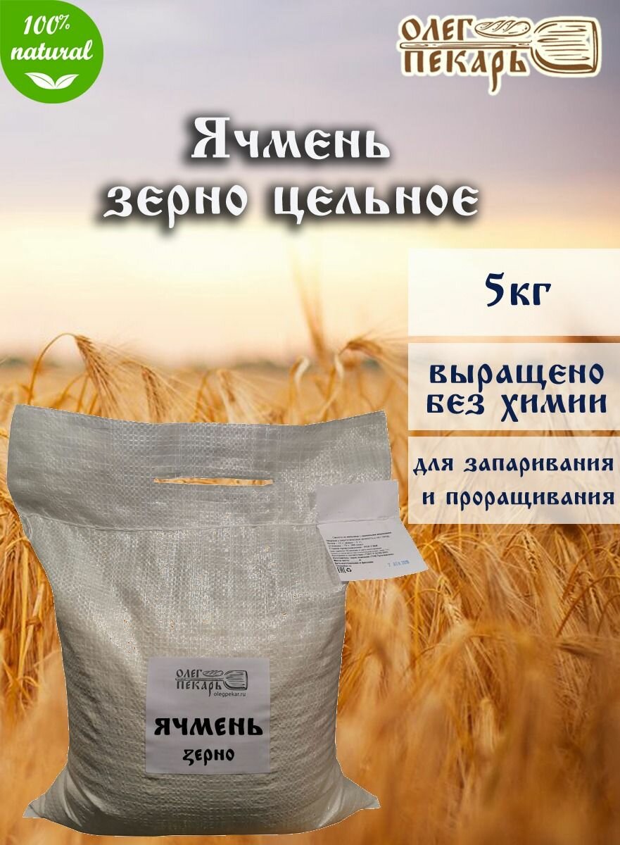 Ячмень Олег Пекарь, цельное зерно для помола, заваривания и проращивания, 5 кг. интересное: