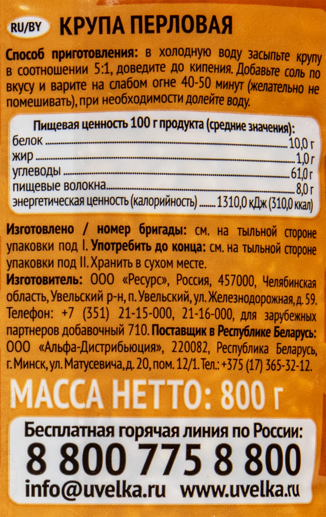 Ниже Вы можете прочитать отзывы на Крупа перловая отборная "Увелка" 800 г 2 шт, ознакомится с подробными характеристиками, посмотреть интересные обзоры и фотографии на Крупа перловая отборная "Увелка" 800 г 2 шт.
