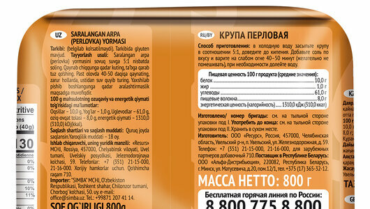 | Дополнительная информация | В сваренном виде перловка остается в меру упругой, не развариваясь и не теряя своей консистенции. В составе содержатся аминокислоты, клетчатка и широкий набор витаминов и минералов. |