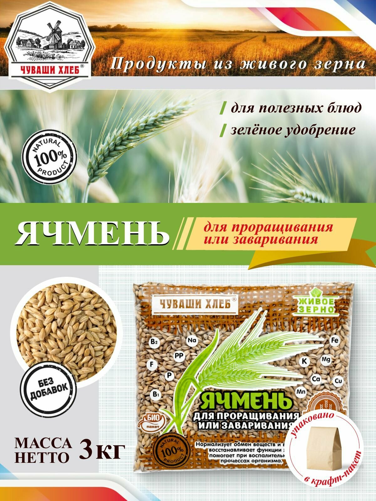 Ячмень для проращивания Чуваши Хлеб 3 кг, для заваривания, для настоев интересное: