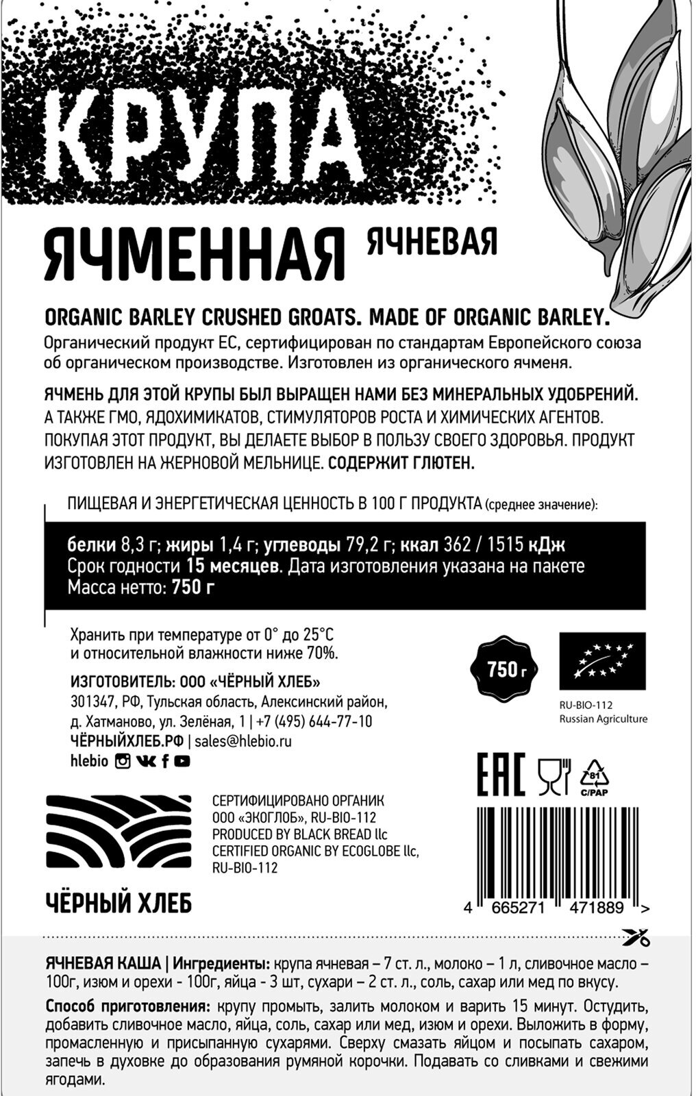 Крупа ячменная ячневая органическая "Черный хлеб", 750 г интересное: