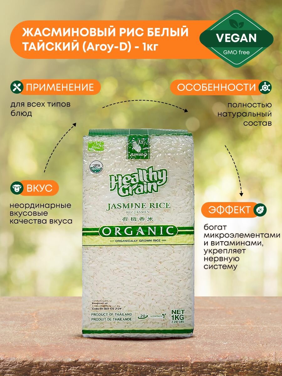 Жасминовый рис белый тайский органический (jasmine rice) Aroy-D | Арой-Ди 1кг интересное: