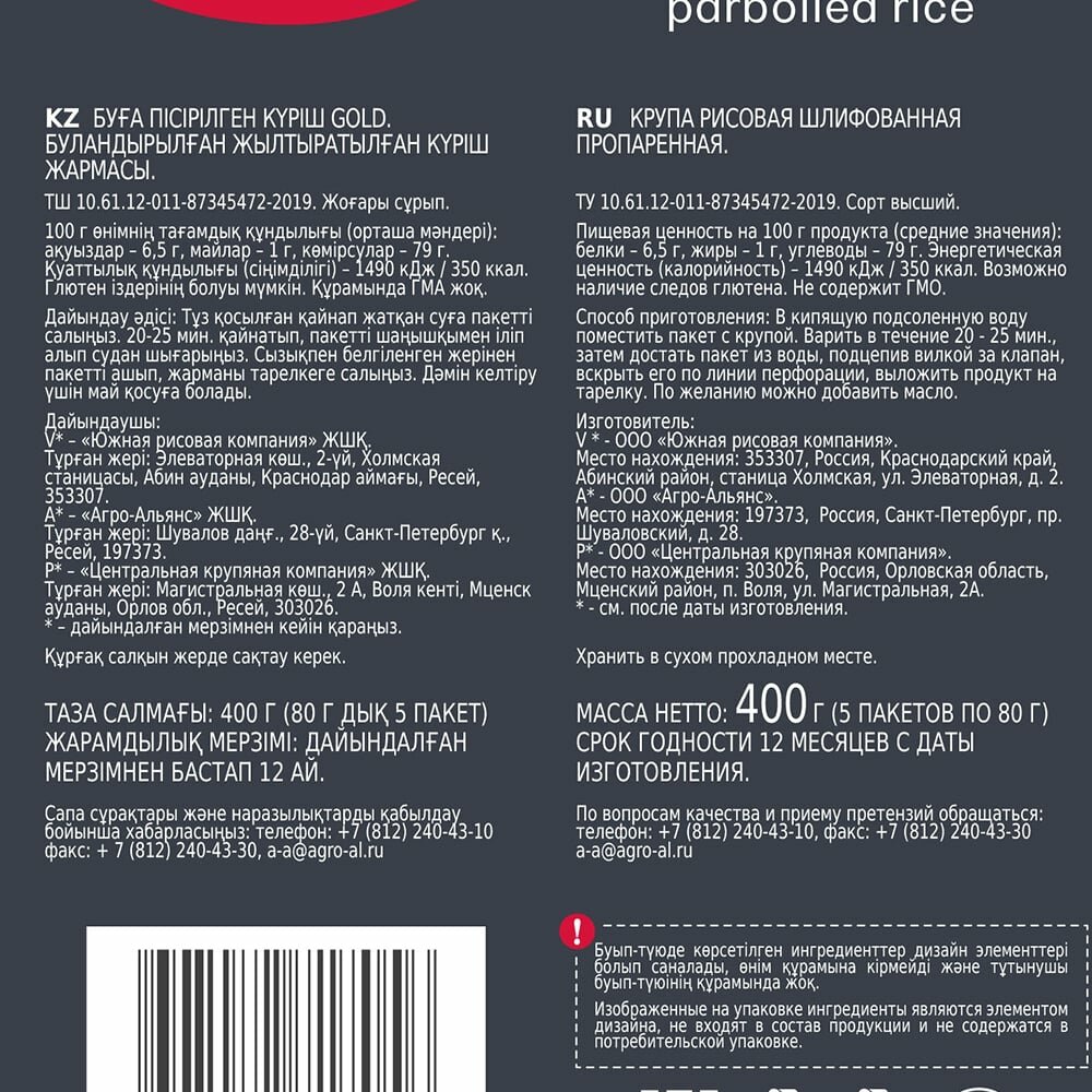 Рис пропаренный GOLD "Агро-Альянс Экстра" в пакетиках для варки 400г (5*80г) интересное: