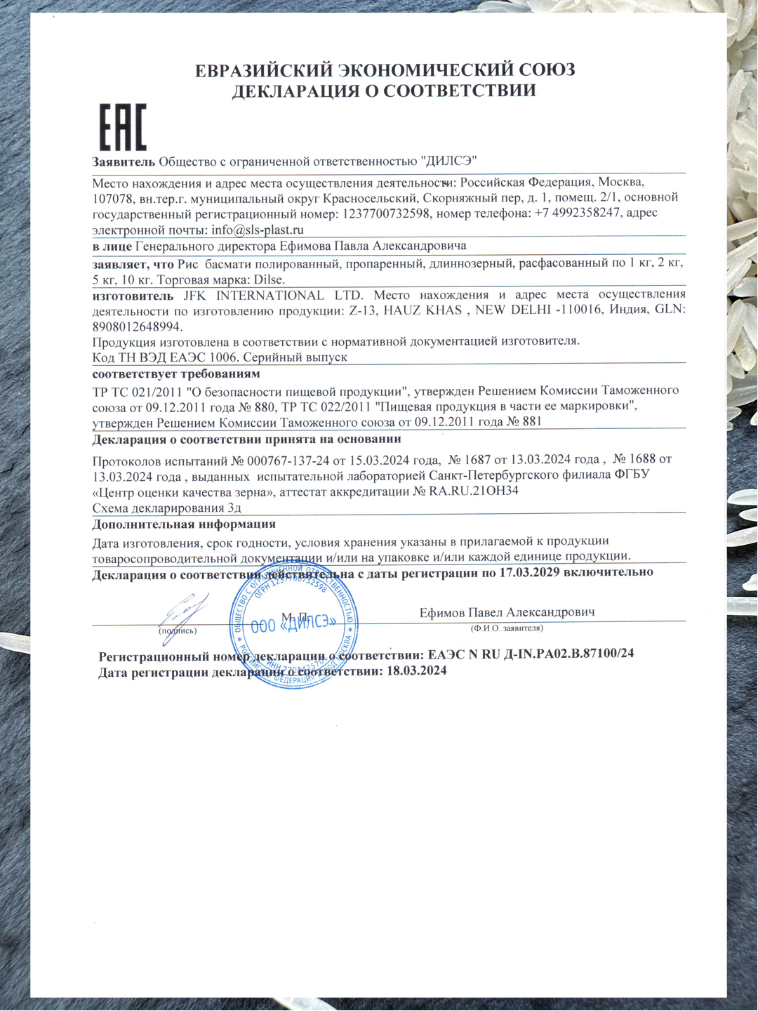"Рис Басмати Royal Premium" от бренда DILSE, 1 кг интересное: