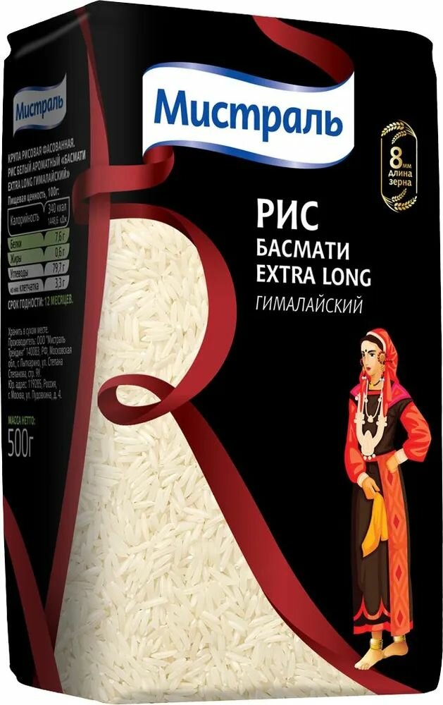 Купить Рис Мистраль Басмати Extra Long Гималайский длиннозерный, 500 г