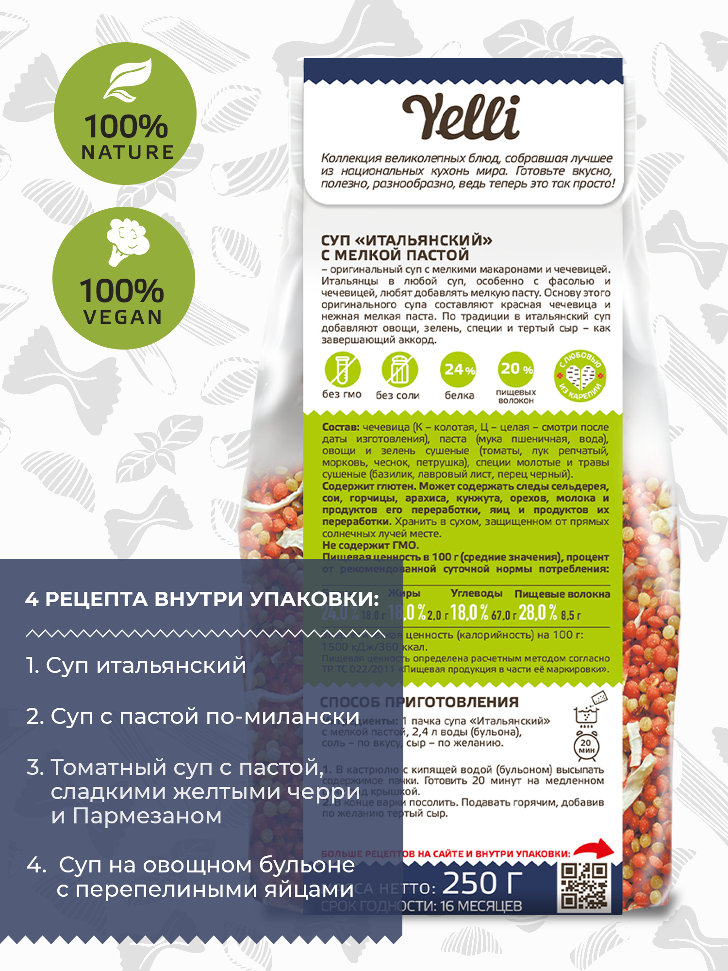 Набор Yelli №2 (Суп Минестроне della nonna 170 г, Суп из чечевицы Масурдал 250 г, Суп Итальянский с мелкой пастой 250 г + Сумка-шоппер в подарок) интересное: