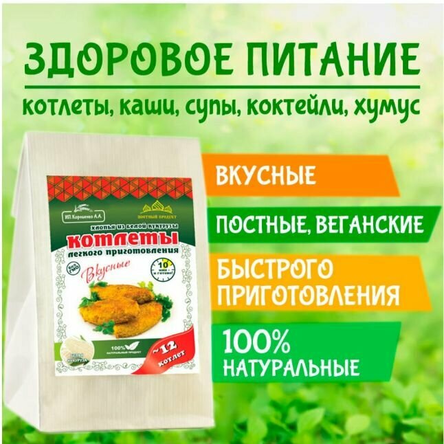 Котлеты из белой кукурузы с асафетидой 230 гр. "Корниенко" натуральный, веганский продукт (2 шт. в наборе)