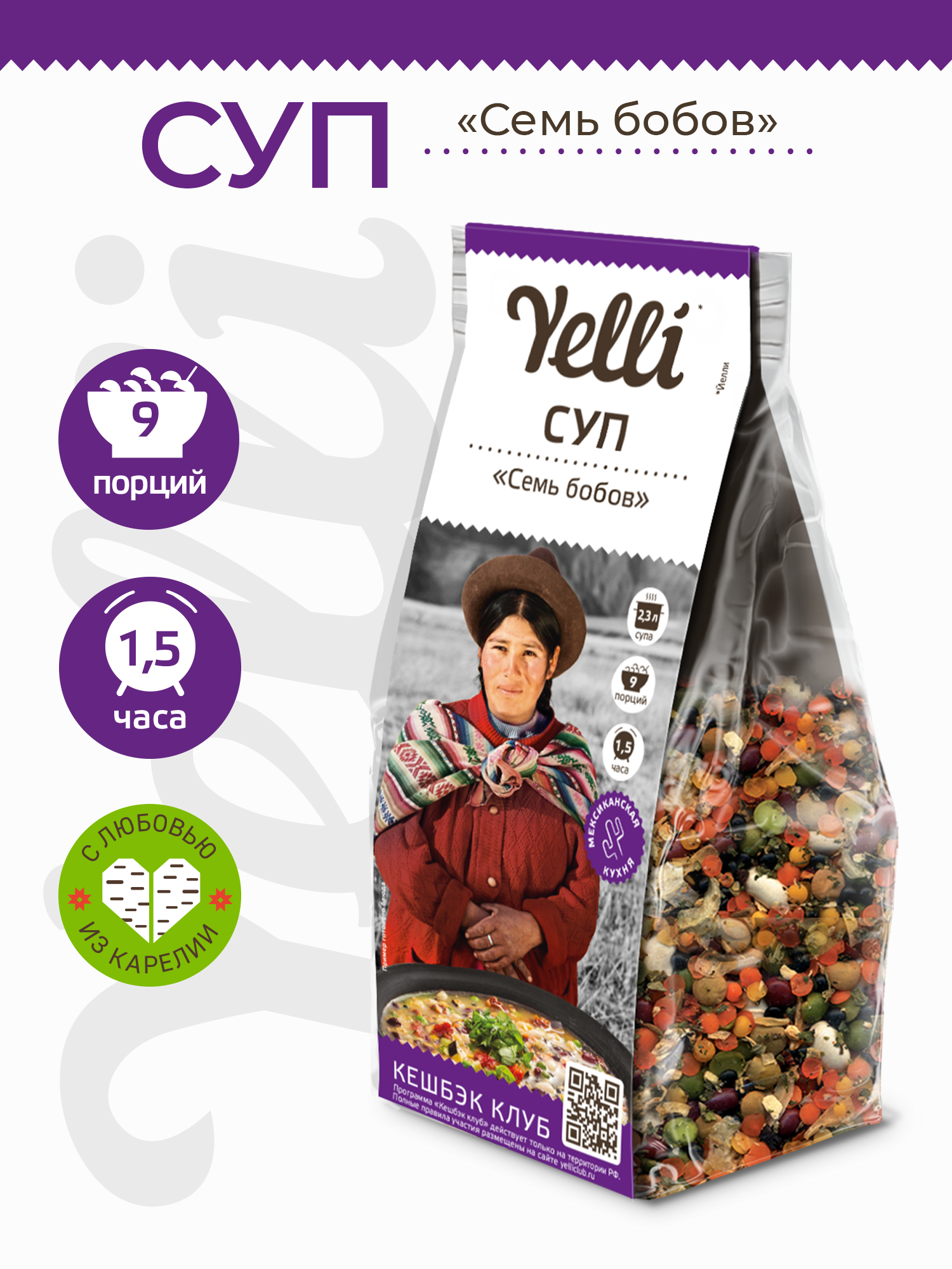 Бобовые супы Yelli 12 шт. (Суп Семь бобов 6*250г, Суп-пюре из гороха с карри 6*250г) интересное: